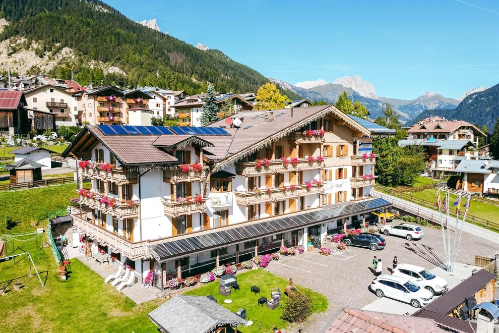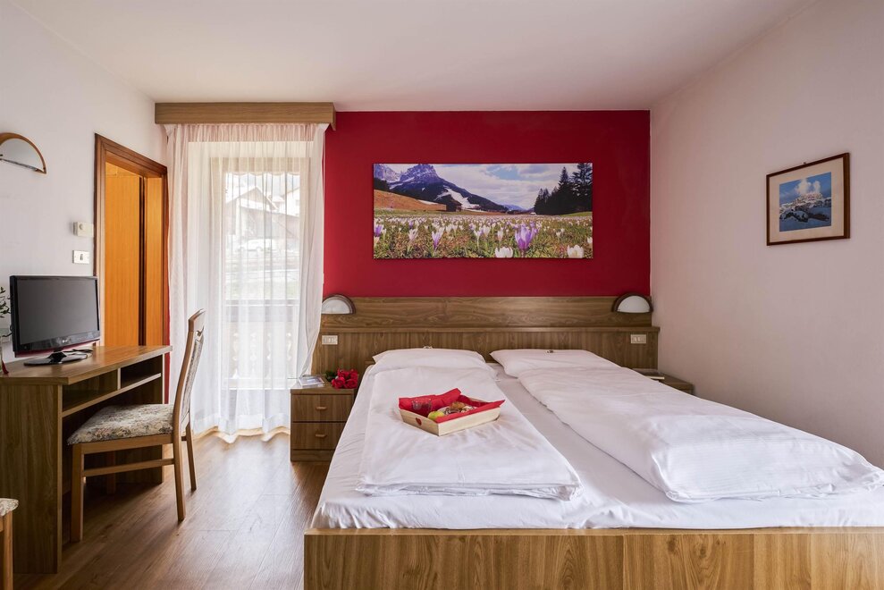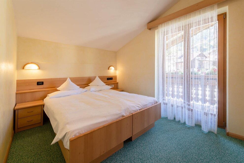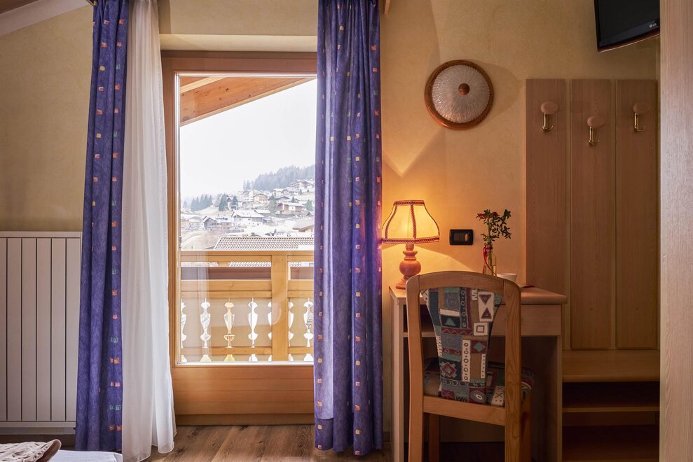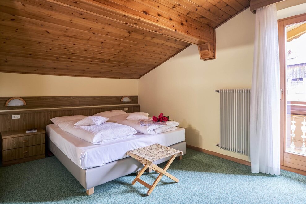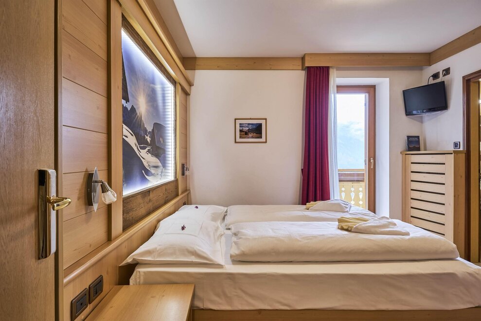 Pokoje oferują niesamowity widok na Dolomity Val di Fassa, niezależnie od tego, czy są skierowane na północ w kierunku La Roda de Vael, czy na południe, gdzie majestatyczna Cima 12 wyłania się na tle niebieskiego nieba.