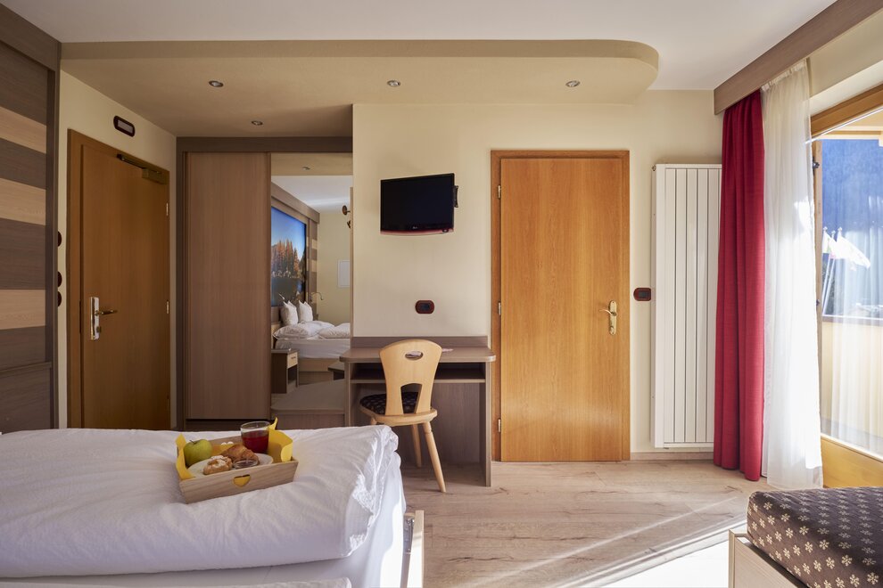 Powrót do pokoju po dniu spędzonym w cudach Val di Fassa to cenny moment do dzielenia się. Dlatego Quadrupla panorama alpino jest zaprojektowana tak, aby pomieścić rodziny lub grupy przyjaciół szukających przestrzeni, komfortu i spokoju.