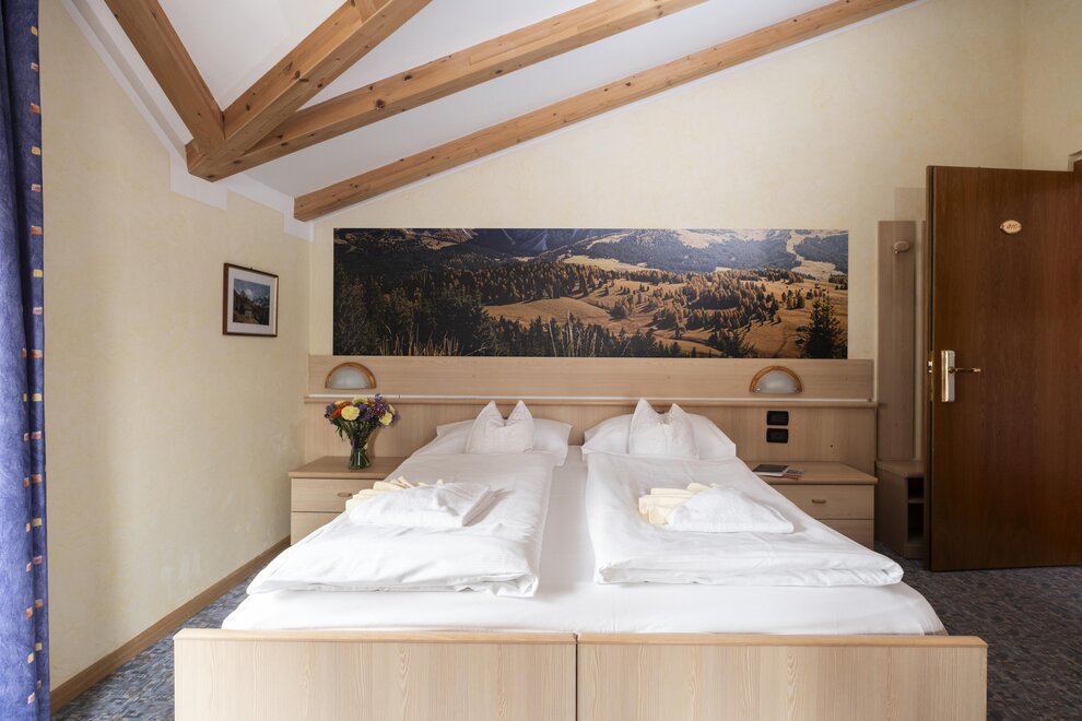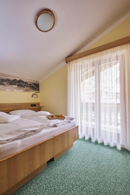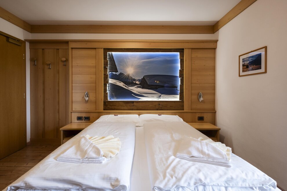 Nasza Pokój Dwuosobowy Comfort to intymne i jasne schronienie, idealne dla tych, którzy pragną doświadczyć Val di Fassa w otoczeniu natury, komfortu i autentyczności.