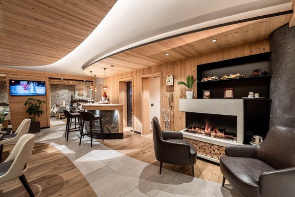 -Obiekt wyposażony jest w strefę relaksu z kominkiem, bar oraz windę.