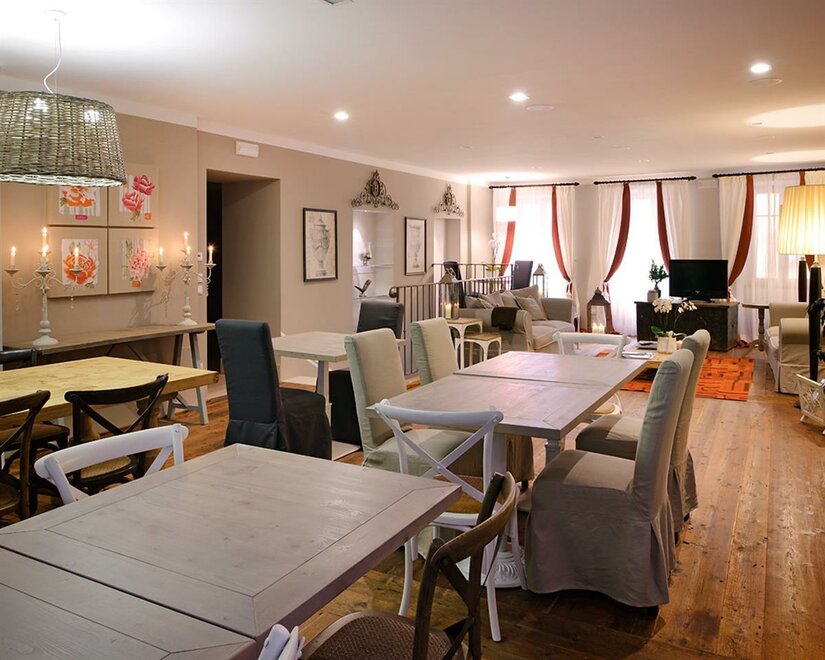 Na piętrze znajdują się sala śniadaniowa oraz salon z kącikiem bibliotecznym. Duża spiżarnia, zbudowana z starych okien pałacu, oferuje oprócz produktów na śniadanie selekcję lokalnych specjałów. Pokoje z wyszukanym i oryginalnym wystrojem są wyposażone w klimatyzację i telewizory LED, a w różnych przestrzeniach oferują różne usługi dostosowane do zróżnicowanych potrzeb gościnności.