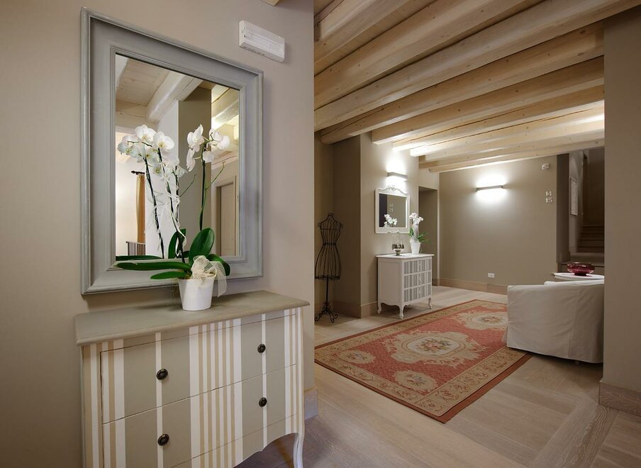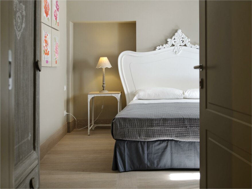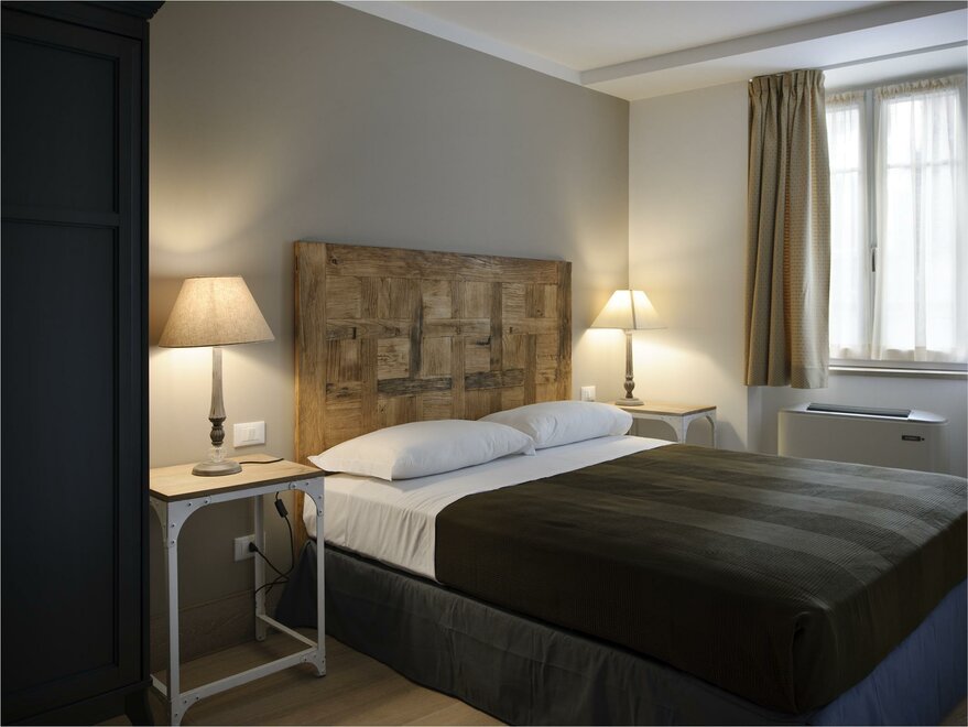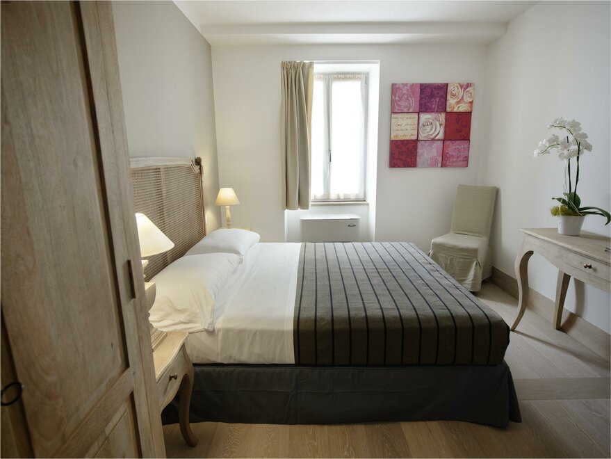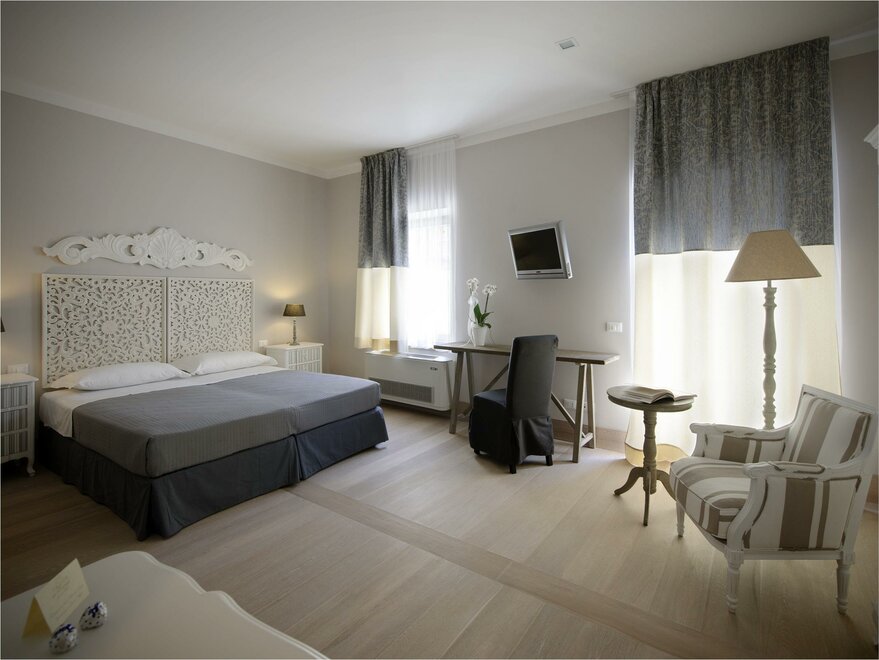 Spacious rooms, permeated by the light coming from the windows and from the little balcony out onto the court. A white headboard carved in wood like a lace embellishes and enriches the room. Superior rooms offer the warmth of classic rooms, combined with the comfort of more space, to make the stay more pleasant , not only for a couple, but also for two friends.