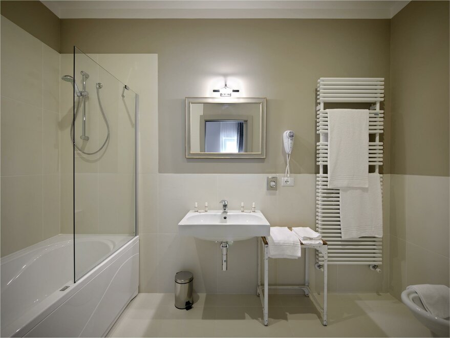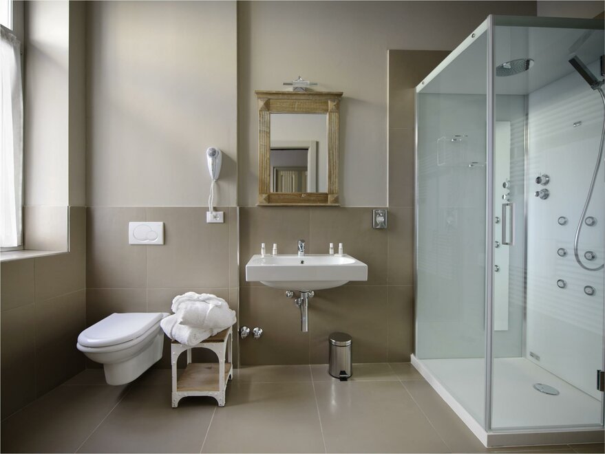 Prosta i elegancka elegancja, która dzięki wyszukanym detalom, takim jak wezgłowia łóżek nawiązujące do francuskiego stylu romantycznego, ozdobne szafy i ekskluzywne zasłony, sprawi, że zatracicie poczucie czasu i przeniesiecie się w romantyczną i zaczarowaną atmosferę. Pokoje jednoosobowe są wyposażone w przestronną łóżko, aby uczynić pobyt komfortowym i przytulnym nawet dla osób podróżujących samotnie. Przemyślane także z myślą o potrzebach biznesmenów, mają wszystkie stolik, przy którym można pracować i odkładać dokumenty oraz laptop.