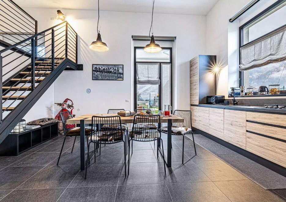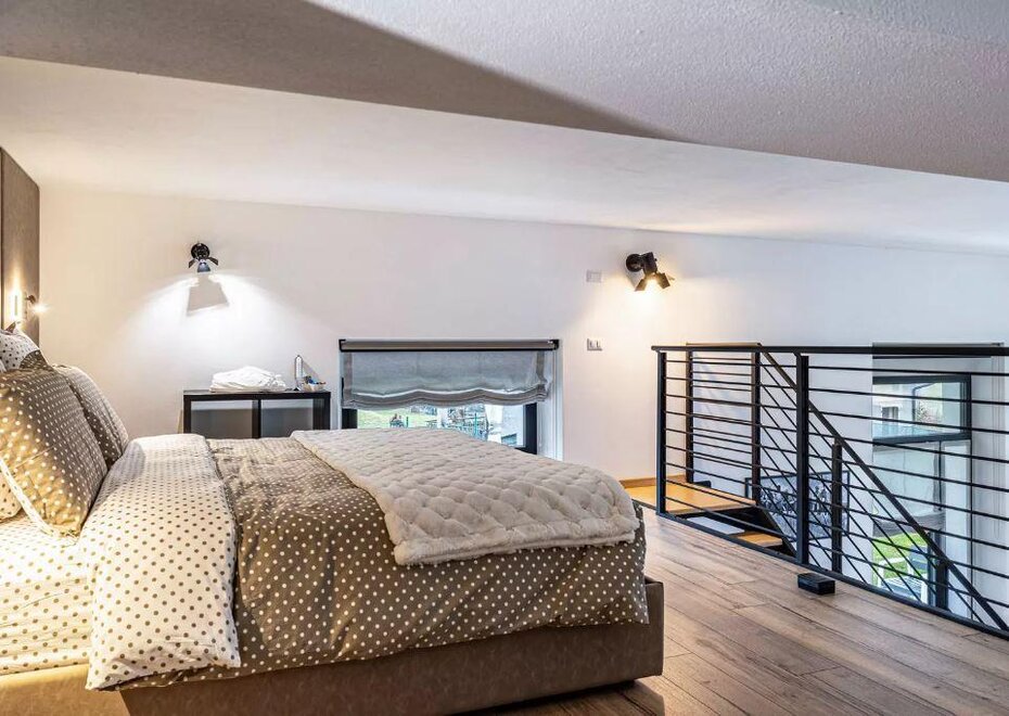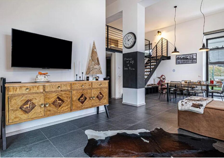 Loft na parterze, składający się z aneksu kuchennego i salonu. Apartament znajduje się w Bocenago, oferuje komfortowe otoczenie z otwartym układem i widokiem na góry. Obiekt ma dwa piętra, składa się z: salonu, w pełni wyposażonej kuchni, 1 sypialni na poddaszu, 1 łazienki z prysznicem, garderoby/magazynu i może pomieścić do 5 osób.