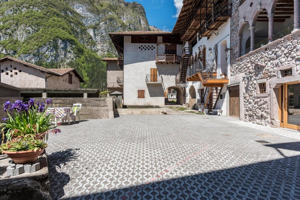 Charakterystyczna architektura Trentino „sklepienia kolebkowe” i grube mury.