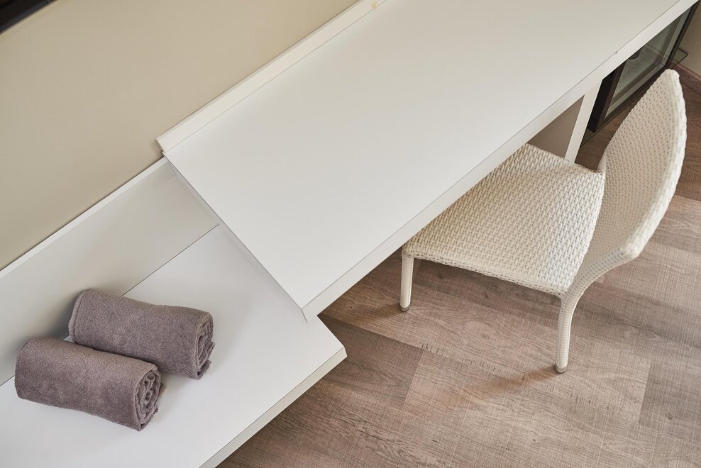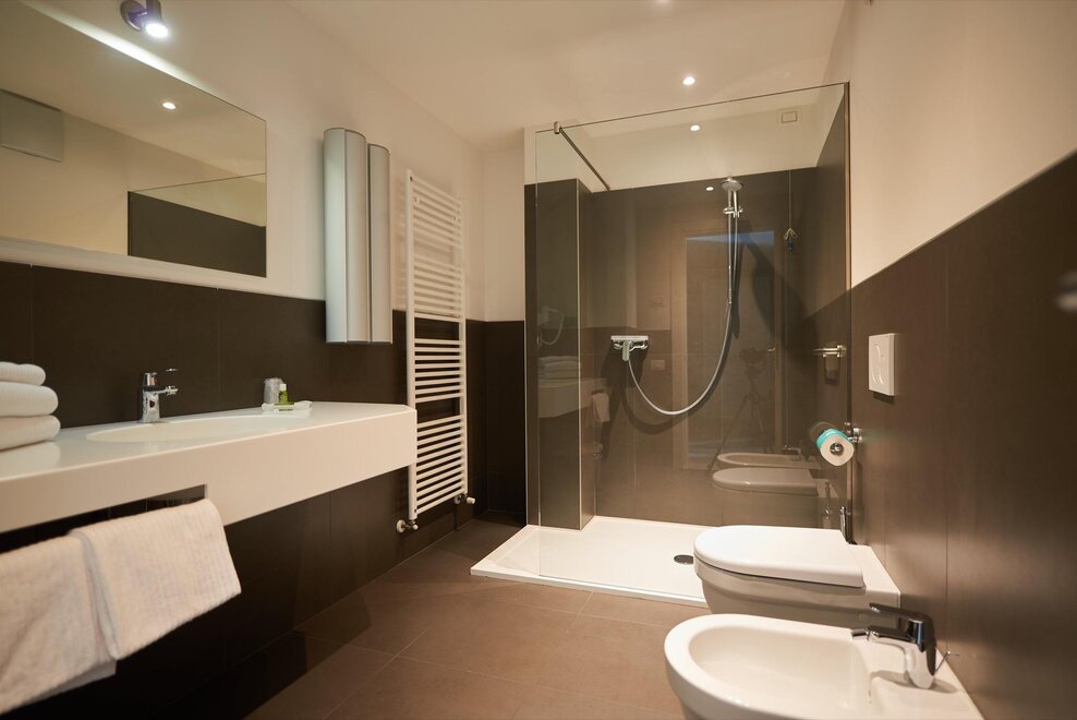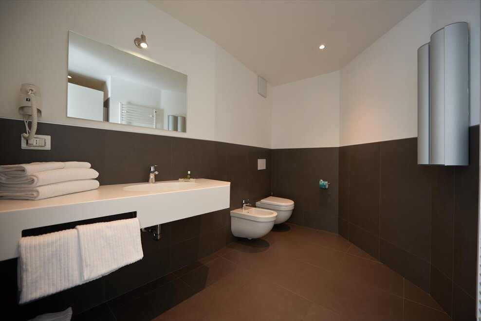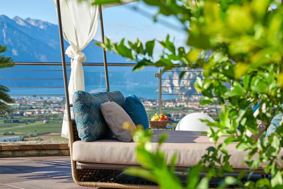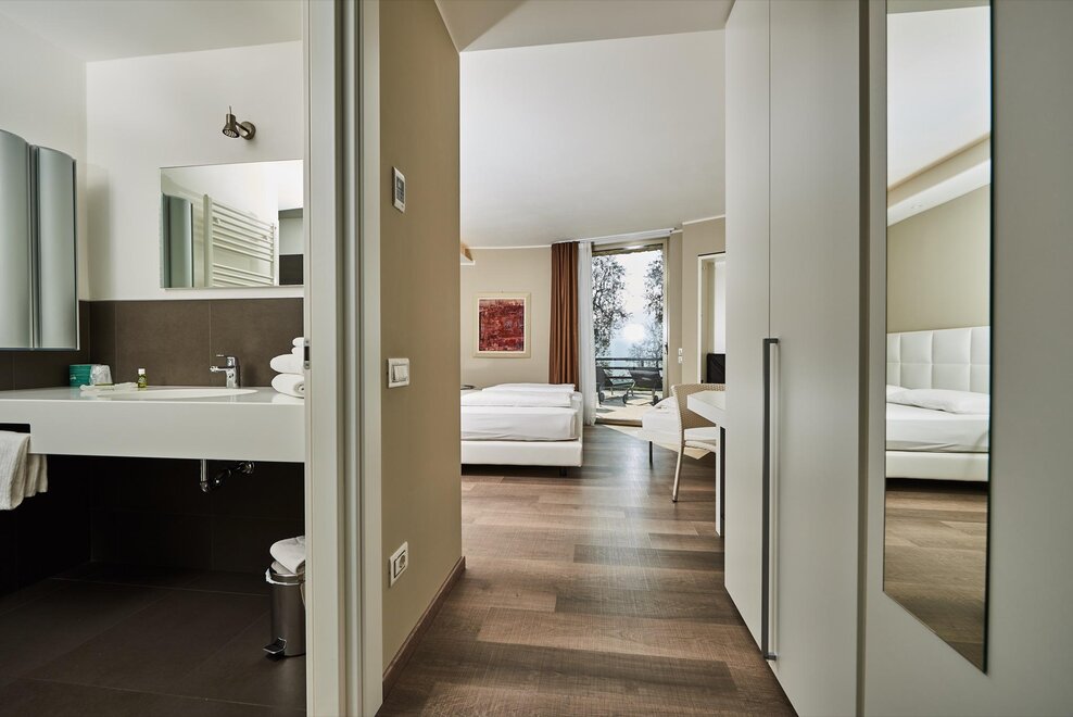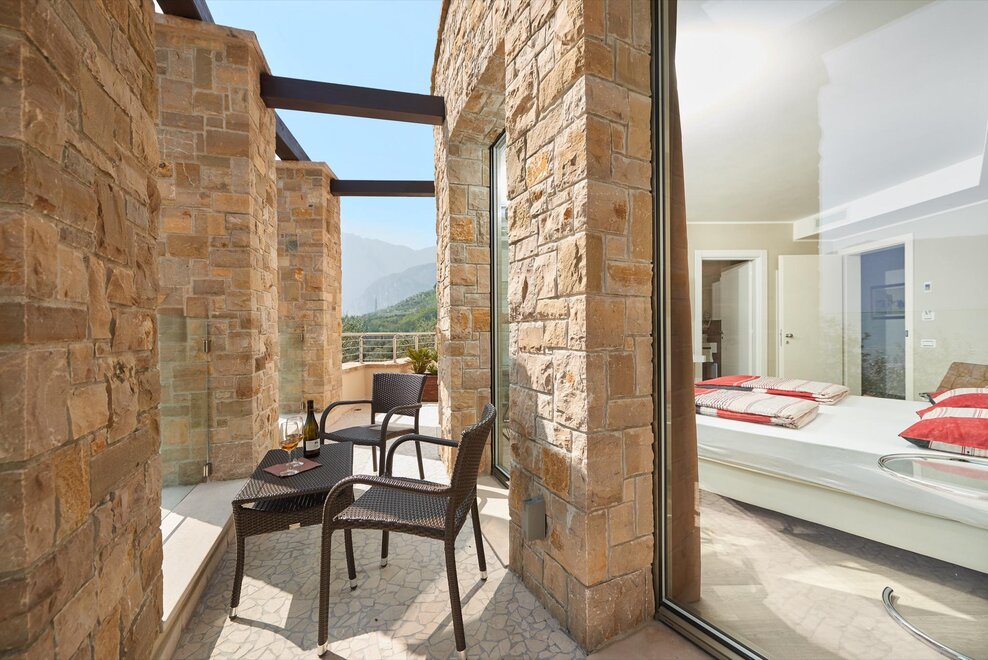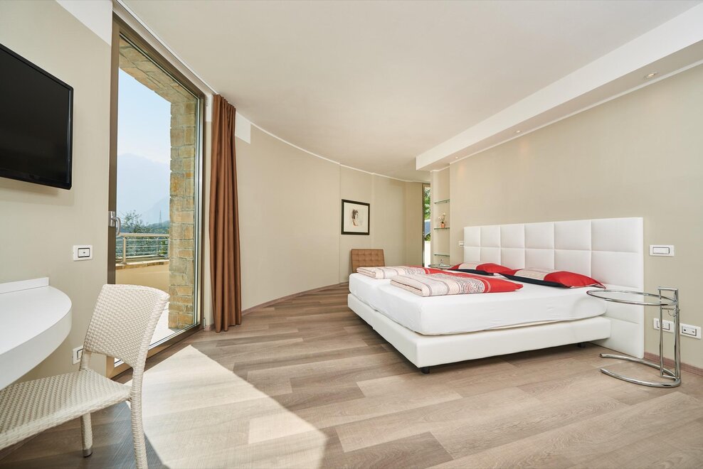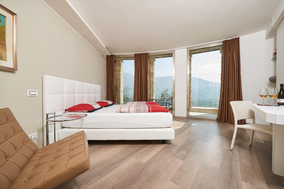 The Junior suite, an oasis of tranquillity, has a big balcony overlooking the castle of Arco and welcomes you with sun loungers and bath towels. With functional and modern furnishings this room is adapted for disabled guests.
