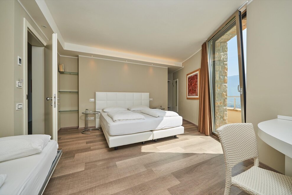 Familijna suite z dużym panoramicznym tarasem słonecznym i leżakami do opalania dominuje nad krajobrazem od zamku Arco po Jezioro Garda. Z przestronnymi wnętrzami i minimalistycznym designem wzbogacona jest o dzieła sztuki lokalnych artystów oraz fotele Barcelona autorstwa Ludwiga Miesa van der Rohe. Oferuje podwójne łóżko + 2 pojedyncze łóżka Open Top, autonomiczne klimatyzowane pomieszczenia, telewizor/SAT cyfrowy 40”, sejf na laptopa, bezpłatny internet WI-FI, minibar oraz świeże owoce. Łazienka wykonana z Corianu z prysznicem King size wyposażona jest w suszarkę do włosów i zestaw kosmetyków.