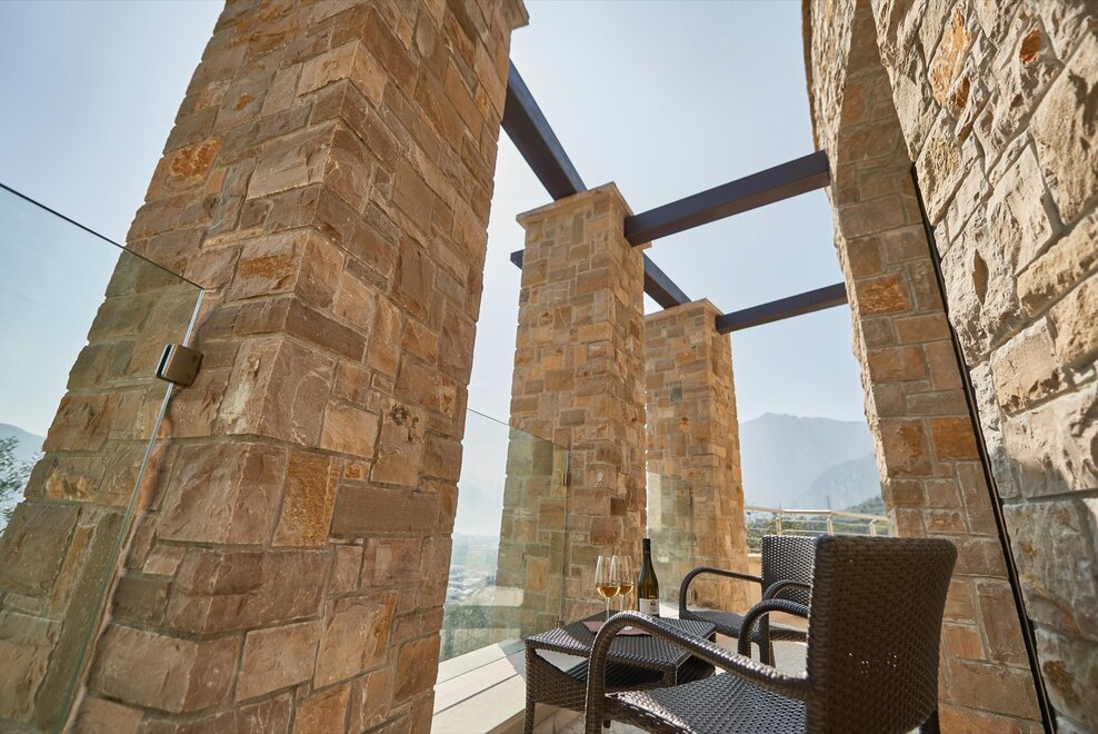 Maso Botés is Santuliana family’s dream come true. Located on the hill above the village of Varignano, Maso Botés is a farmhouse that combines tradition and nature with elegance and contemporary design, it offers an exclusive environment, dedicated to his guests’ needs. The contemporary furnishings offer the maximum comfort with advanced technological solutions and careful design. The agritourism offers accommodations in rooms and suites with prestigious equipment. Buffet service in the morning with typical food. Underground garage and panoramic solarium with Jacuzzi, accessible by lift. Rounded forms, large and bright spaces integrate the internal and external environments allowing a dynamic and comfortable use. Families, couples, will enjoy their holiday in perfect freedom and independence, rewarded by an unique landscape.Thanks to the integration with the farm, you will have the chance of tasting and purchasing our products as well as the typical products of the country.