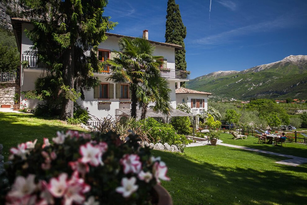 Przekraczając bramę posiadłości, otoczoną starymi murami, wchodzi się do małego bajkowego świata. Jak balkon wychodzący na zieloną Dolinę Sarca, w północnej części Jeziora Garda, mały ośrodek, zanurzony w dużym parku - ogrodzie i otoczony winnicami oraz oliwkami, gwarantuje ciszę i odpoczynek, ale stanowi również idealny punkt wyjścia do mniej lub bardziej wymagających wędrówek pieszych lub na rowerze górskim. Stary dom wiejski mieści na pierwszym piętrze pięć komfortowych pokoi, urządzonych w stonowanym stylu tradycji wiejskiej: każdy z nich ma swoją tożsamość oraz przestronną i zadbaną łazienkę. Ich nazwy to Woda, Powietrze, Ziemia, Ogień i Żelazo. Oddział posiadłości to przestronny apartament, idealny dla rodzin, dominowany przez dużą taras, który w sezonie letnim staje się przyjemnym przedłużeniem domu, gdzie można się zrelaksować, gotować lub spokojnie kolację jeść. Wzdłuż murów obronnych, rozłożonych na 7 tarasach, stworzyliśmy także inne