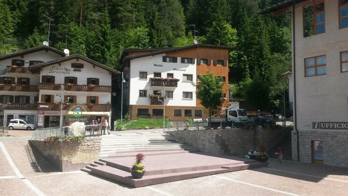 To jest hotel rodzinny z 25 miejscami noclegowymi, w samym centrum Canazei w strefie ograniczonego ruchu z zarezerwowanym parkingiem. Fasada obiektu wychodzi na główny plac Canazei, gdzie znajduje się biuro turystyczne i przewodników górskich, oraz gdzie odbywają się główne letnie wieczorne wydarzenia. Wyciąg narciarski, który łączy z Sellaronda oraz szkoła narciarska znajdują się około 400 m dalej, zimą kursuje płatny pociąg, który zatrzymuje się tuż przed wejściem do hotelu.