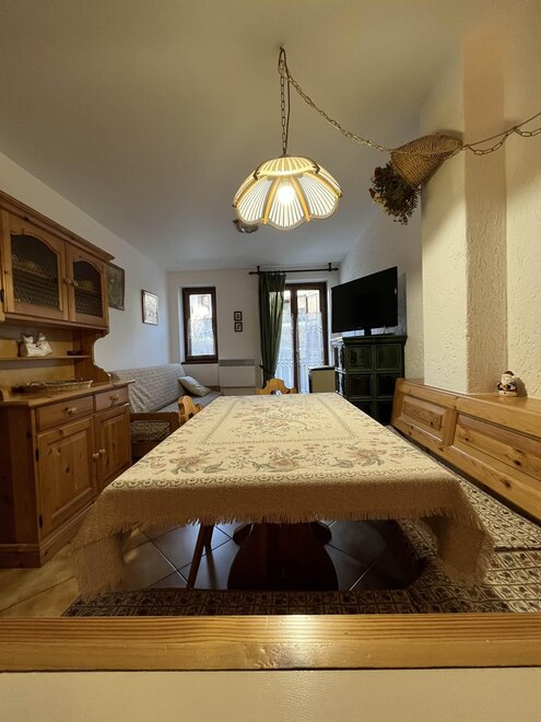 oraz schowka pod schodami. Mieszkanie jest w pełni wyposażone z możliwością przekształcenia kanapy w wygodne łóżko zarówno jednoosobowe, jak i podwójne, duży balkon z widokiem na góry i miejsce parkingowe na zewnątrz. Wyposażenie wykonane jest z sosny, bardzo przytulne i funkcjonalne.