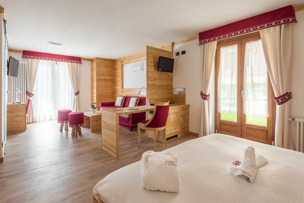 A stay at the Hotel St. Raphael in Madonna di Campiglio: an unforgettable holiday, both in summer and in winter, in the hearth of the Brenta Dolomites, fascinating mountains which lie in a corner of the world created especially for holidays. The Italian national alpine skiing has been coming here for a number of years to train and to compete in the World Cup. The rooms (47 with a total of 92 beds) are warm and welcoming. Each is comfortably furnished and has an adjoining bathroom with hairdryer, a colour TV, a telephone and safe. The hotel also has a bar, a breakfast room a luncheon room, a lounge, two lifts, a games room, a TV room, a sauna, a Turkish bath, a hydromassage, a UVA rays solarium and a garage. First class typical cuisine and no gluten food.