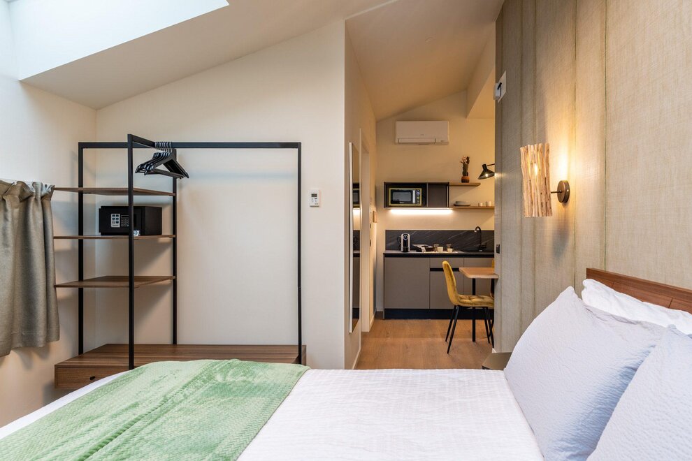 Apartament typu studio junior suite wyposażony jest w duże, wygodne łóżko podwójne, przestronną łazienkę z prysznicem XL, 43-calowy telewizor Smart TV oraz bezpłatny, ultraszybki dostęp do Internetu. Goście otrzymują ręczniki i zestaw kosmetyków.