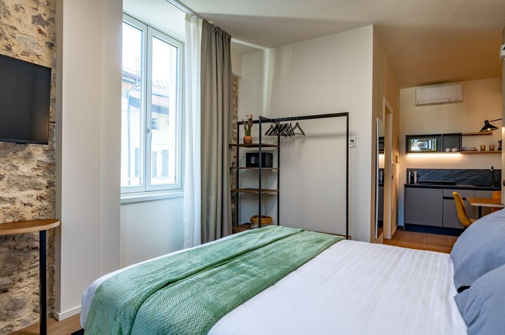 Z pokoju typu studio Deluxe roztacza się widok na główne ulice zabytkowego centrum Trydentu.