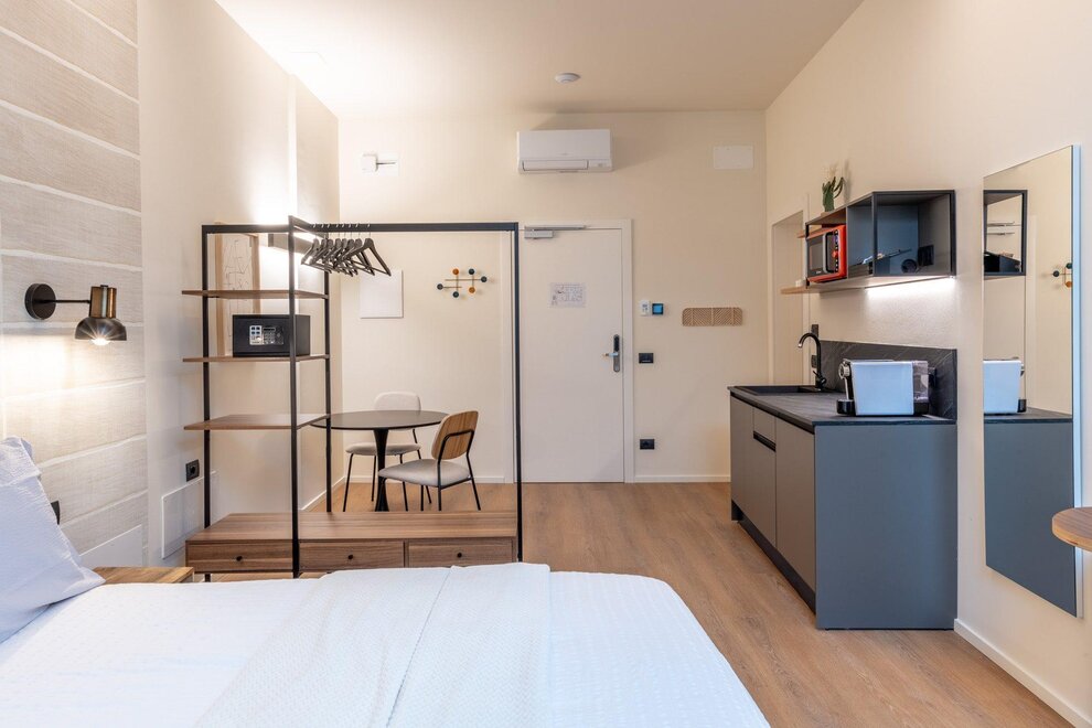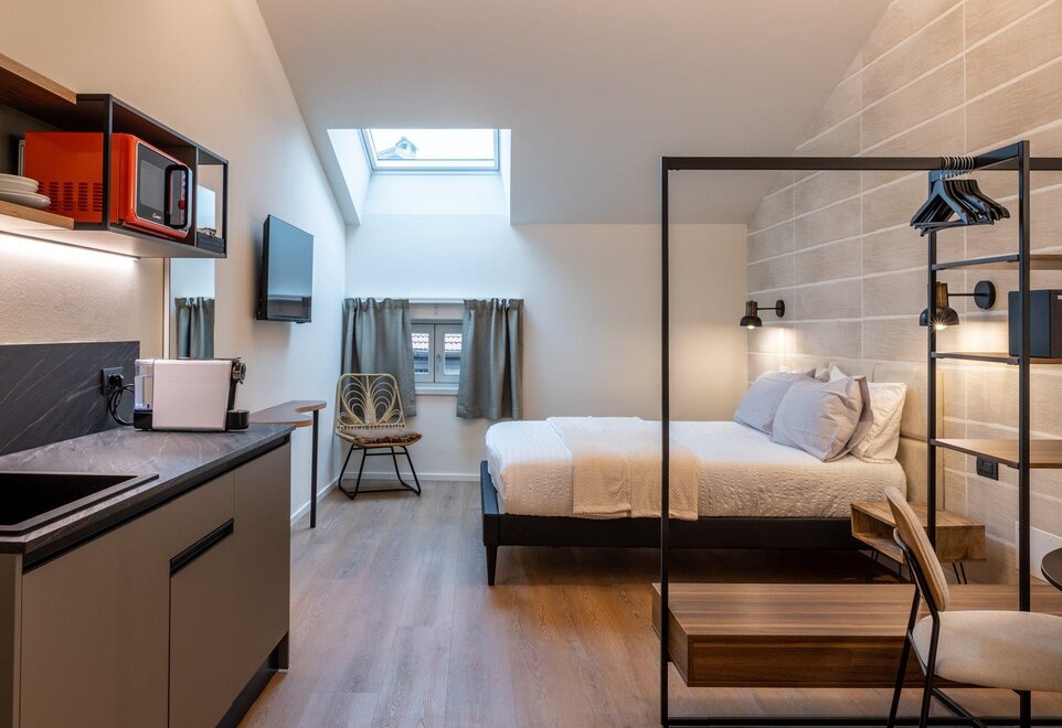 The Place specjalizuje się w oferowaniu krótkoterminowych pobytów dla tych, którzy chcą cieszyć się niezapomnianymi wrażeniami w samym sercu Trydentu, a także dla tych, którzy muszą podróżować do pracy. The Place jest strategicznie położony w historycznym centrum Trydentu, z widokiem na dwie główne ulice miasta, Oriola i Mantova, zaledwie kilka kroków od Piazza del Duomo. Ta centralna lokalizacja pozwala naszym gościom w pełni zanurzyć się w prawdziwej esencji miasta, pozwalając im podziwiać lokalne piękno, jednocześnie ciesząc się przyjazną atmosferą. Nie tylko lokalizacja sprawia, że The Place jest wyjątkowy, ale także jego fascynująca historia. Niedawno odnowiony budynek znajduje się w prestiżowym Palazzo Moncher, niegdyś rezydencji Guido Monchera, pioniera lotnictwa i wynalazcy helikoptera. Mocno wierzymy w automatyzację usług; nasz obiekt został zaprojektowany tak, aby zagwarantować gościom maksymalną prywatność, bezpieczeństwo, autonomię i elastyczny dostęp. Wybraliśmy najnowocześniejszą technologię samodzielnej odprawy online i inteligentnego otwierania drzwi do wejścia zarezerwowanego wyłącznie dla gości The Place. Zastosowany system samodzielnej odprawy online sprawia, że proces przyjazdu jest szybki, prosty i nieskomplikowany: wystarczy wypełnić rejestrację online przed przyjazdem.