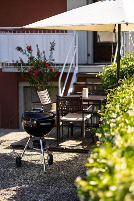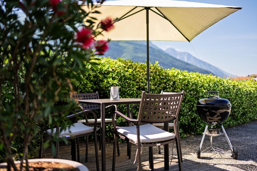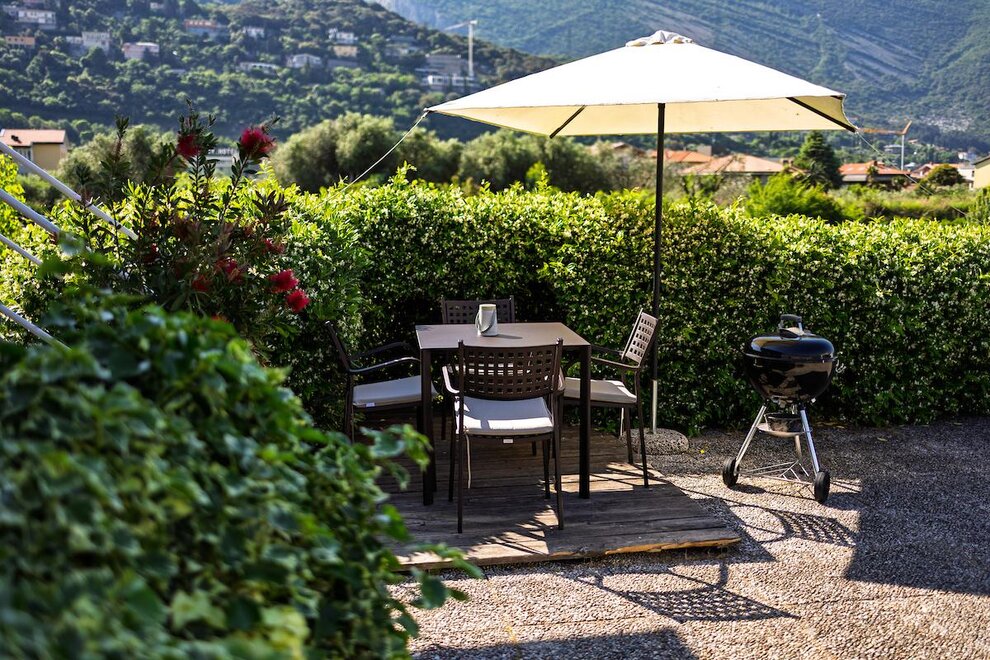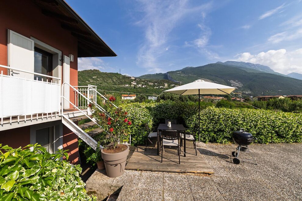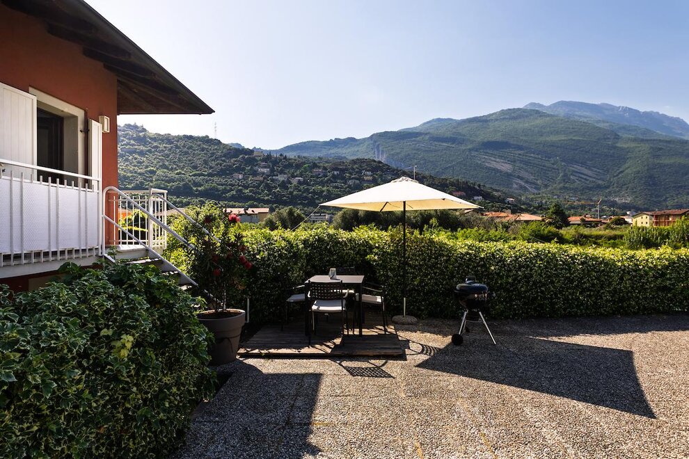 Apartament L '"Torbole Holiday House" znajduje się w rzeki Sarca, bezpośrednio na ścieżce rowerowej w słonecznej i spokojnej okolicy w odległości krótkiego spaceru od centrum Torbole. To sa dobrze wyposażone dwupokojowe mieszkanie na pierwszym piętrze budynku. Posiada prywatny parking oraz duży ogród z grillem, jadalnią, tarasem słonecznym, częścią do przechowywania rowerów / surf naprawiony. Idealne dla małych rodzin i młodych par lub sportowych. Mieszkanie jest wyposażone we wszystkie niezbędne udogodnienia na beztroskie wakacje, lodówkę, telewizję satelitarną, sprzęt stereo, zmywarka, odkurzacz, sejf, piekarnik elektryczny, mikser i ekspres do kawy ekspres do kawy. Mieszkanie posiada bardzo przestronny pokój z podwójnym łóżkiem i łóżkiem poltra, salon z aneksem kuchennym i rozkładaną sofą oraz przestronną łazienkę z prysznicem