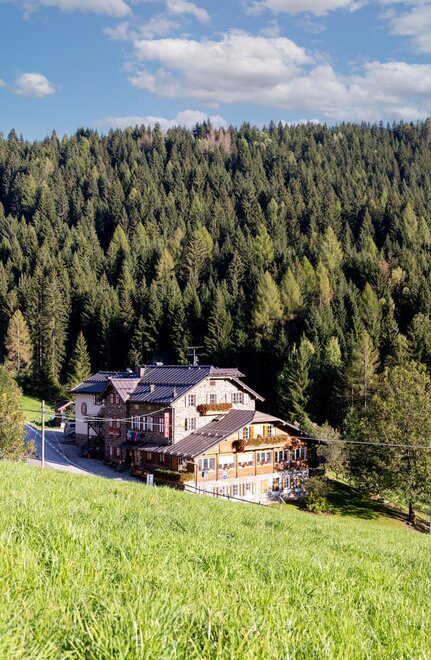 Budynek w typowym stylu górskim, w sercu Dolomitów, hotel Zaluna jest idealnym miejscem dla tych, którzy chcą spędzić miłe i relaksujące wakacje w kontakcie z zielenią natury i lasów, w których jest otoczony. Zarządzanie, bezpośrednio prowadzone przez właścicieli, oferuje przytulną i rodzinną atmosferę oraz szczególnie staranną kuchnię. Jego lokalizacja w spokojnym miejscu poza centrum czyni go dogodnym punktem wyjazdowym na wędrówki w górach i do ośrodków narciarskich.