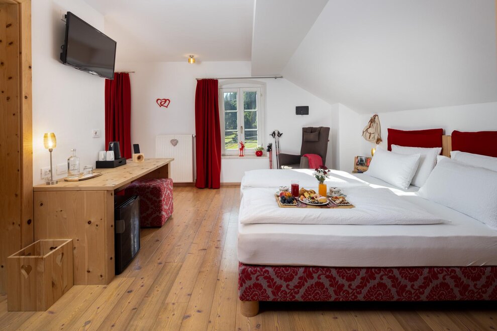 The ‘comfort’ rooms are double or triple rooms of 20 up to 23 sq m, all equipped with SAT TV, radio, phone, safe, bathroom with shower, hairdryer, courtesy set, and balcony. The entrance to the wellness centre is included. Recommended for couples who need a spacious room or families with a baby.