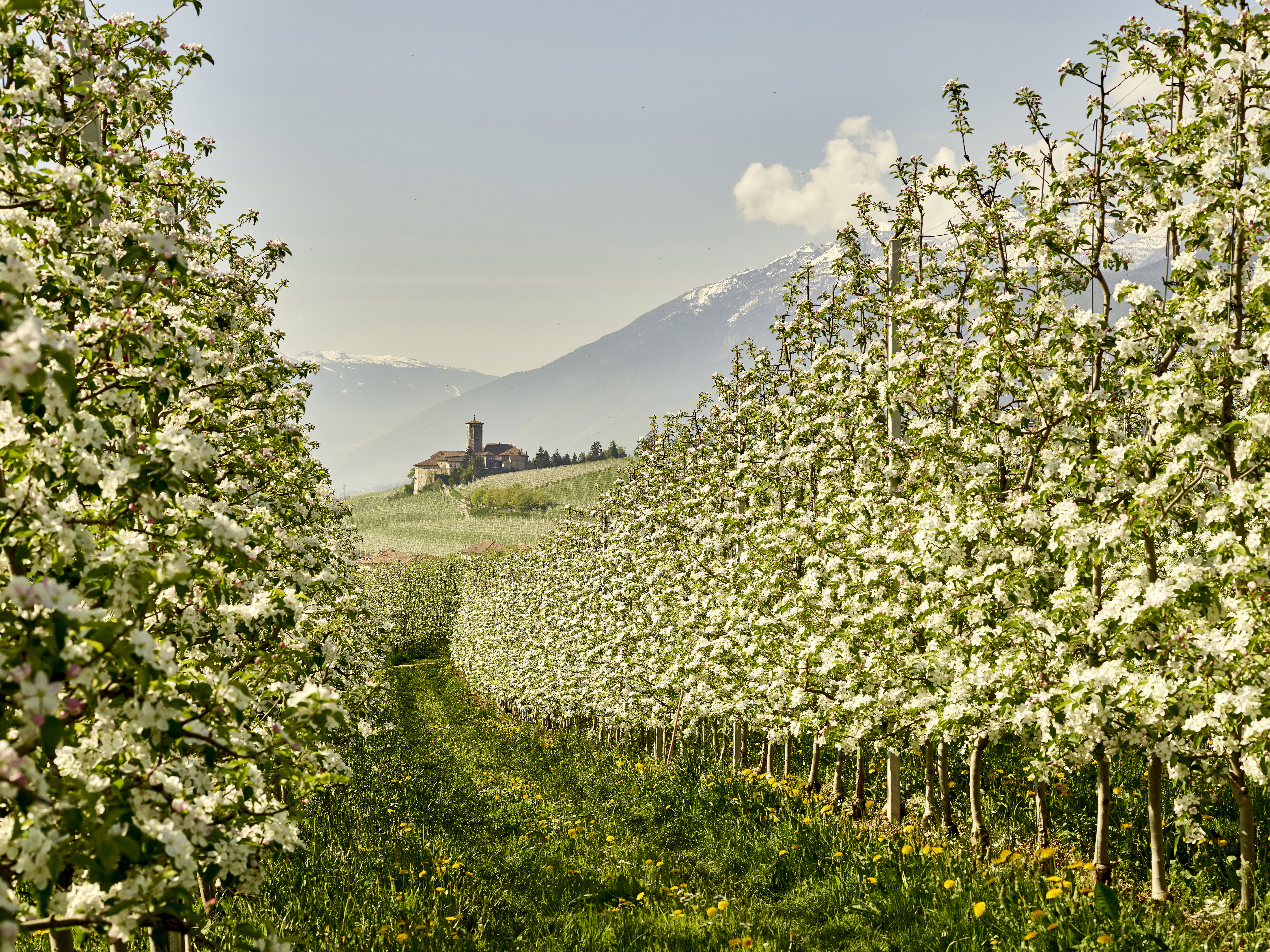 The spring transition occurs early in Valle di Non, known as the valley of apples, with the landscape dramatically changing from lush green to a sea of white and pale pink blossoms ahead of the season. The apple trees then bloom at the end of April, making it the perfect time to discover the valley and its small, historic villages which can be reached by the numerous hiking and cycling trails that pass through the expanses of apple orchards.