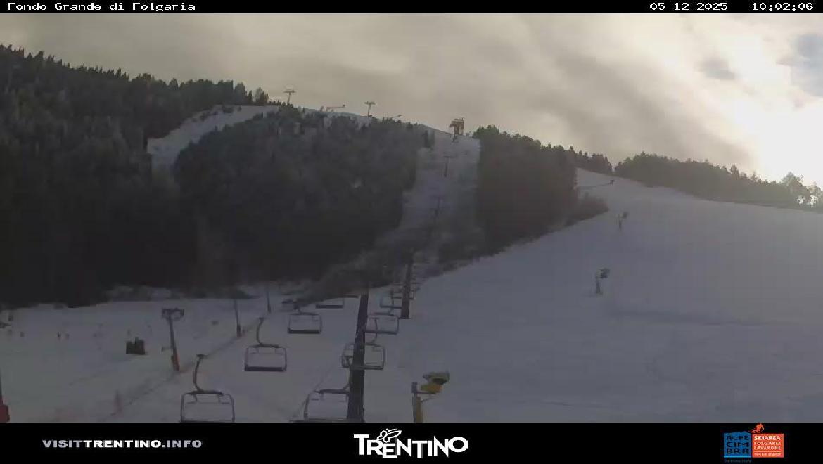 the Folgaria plateau, framed by forests and the Trentino peaks;