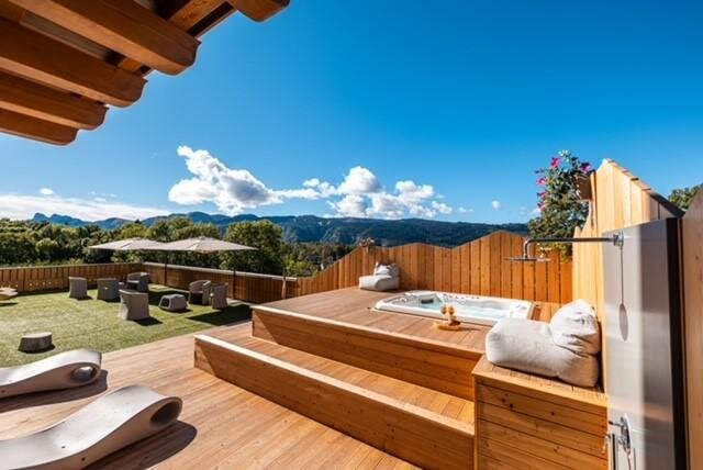 - Access to the hotel’s whirlpool with sunset aperitif and one entry to the new spa with sauna, Turkish bath, and experience shower.