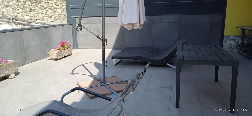 Апартаменты состоят из 1 спальни с двуспальной кроватью, 1 спальни с 2 односпальными кроватями, которые можно объединить, 1 ванной комнаты с душем и феном, кухни и гостиной с диваном-кроватью. Кухня оборудована посудой, кастрюлями, сковородами, электрической плитой и электрической духовкой, микроволновкой, чайником и кофемашиной с капсулой. Частная терраса, оборудованная столом, стульями и зонтом, чтобы можно было поесть в полном расслаблении в летние дни.