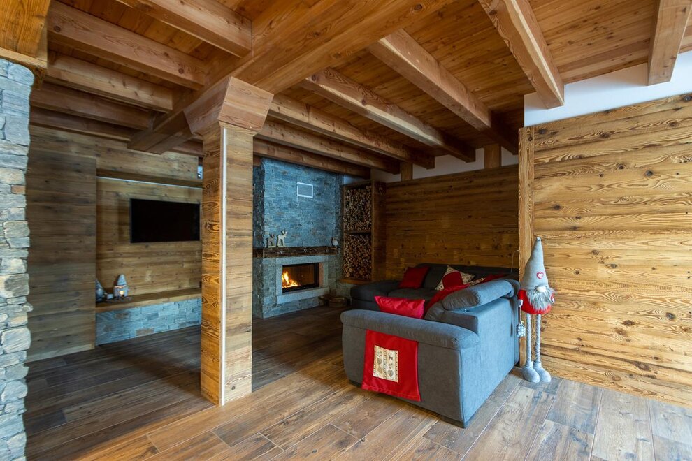 - гостиной с прекрасным деревянным камином