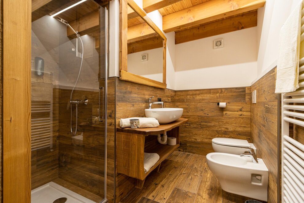 У вас будет в распоряжении целая квартира, расположенная в красивом деревянном шале, состоящая из первого этажа (нашего жилища) и дополнительной квартиры на втором этаже, а также рядом стоящего дома. Дорога к Ниду дель Брента проходима круглый год даже на обычных автомобилях.