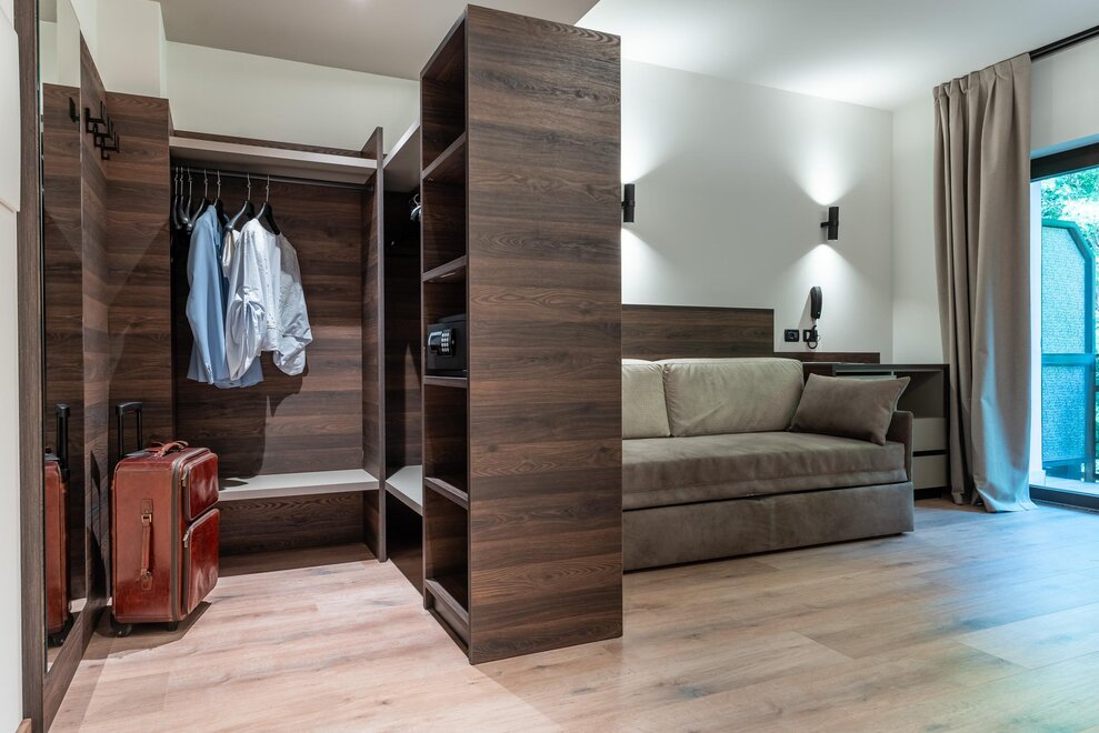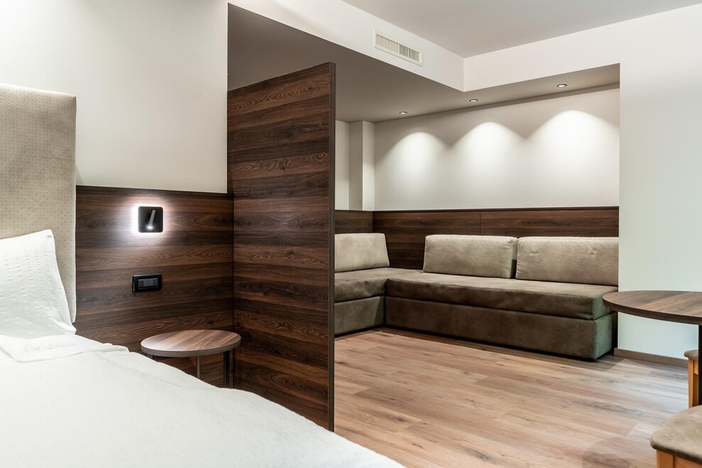 Для тех, кто ценит комфорт, просторный номер современно оформлен в деталях с деревянным полом, оборудован кондиционером и мини-баром. Включает в себя зону отдыха с диваном, идеален для пар, которые любят просторы, или для семей.