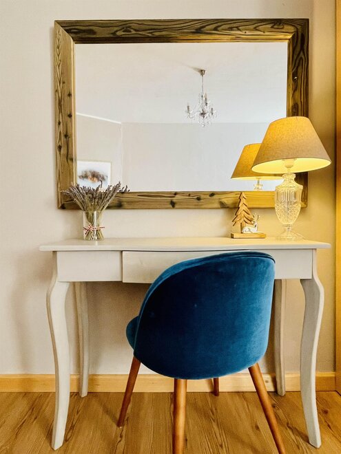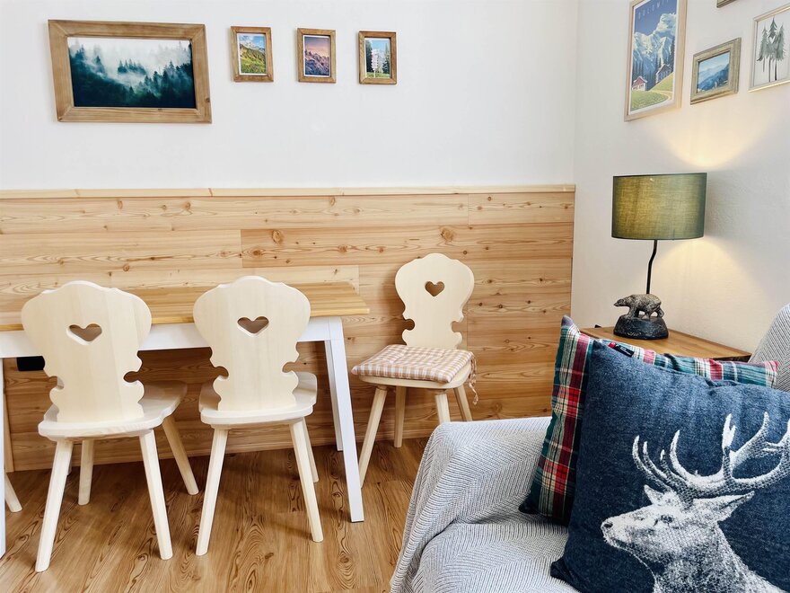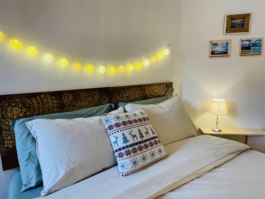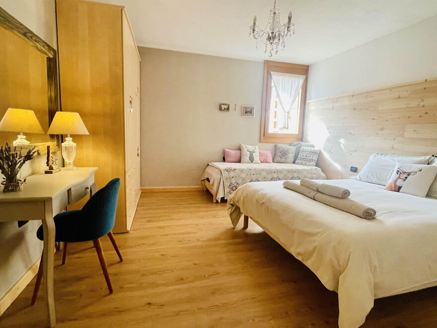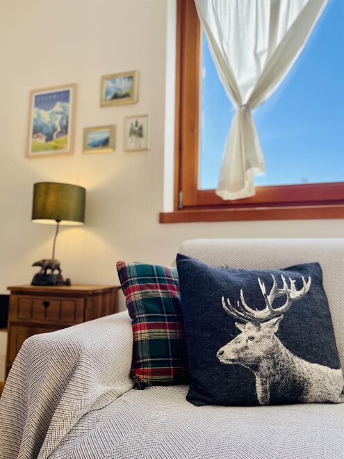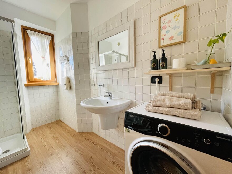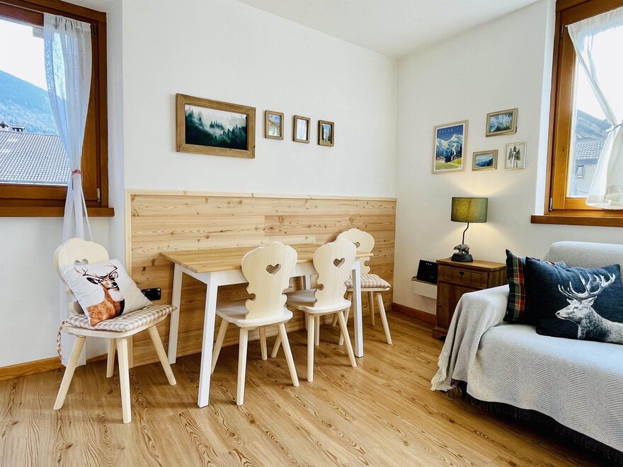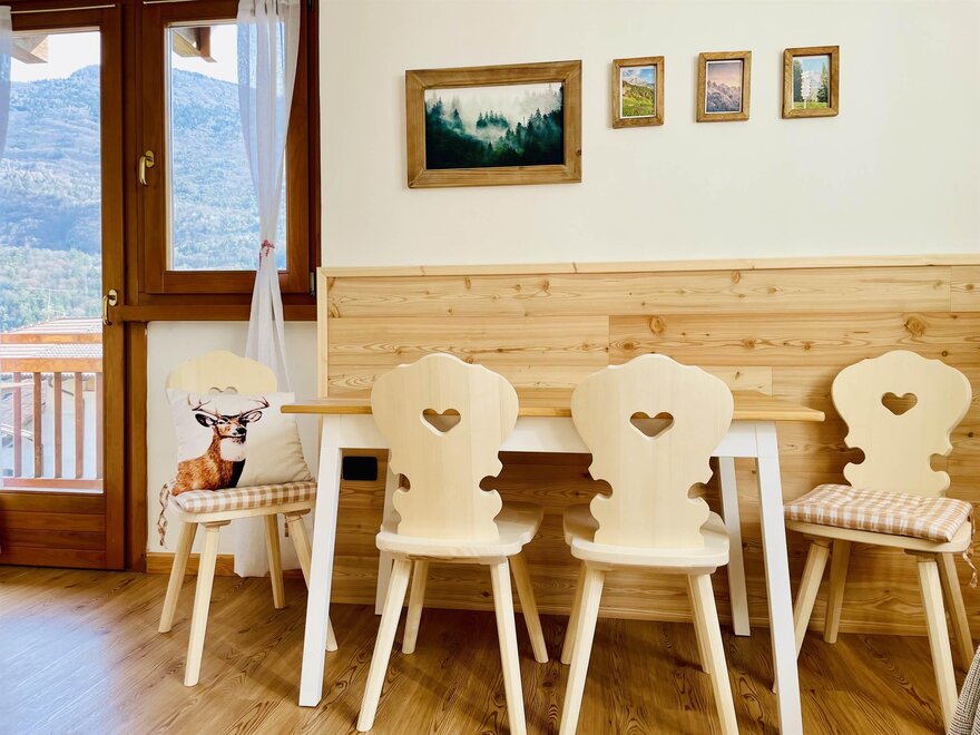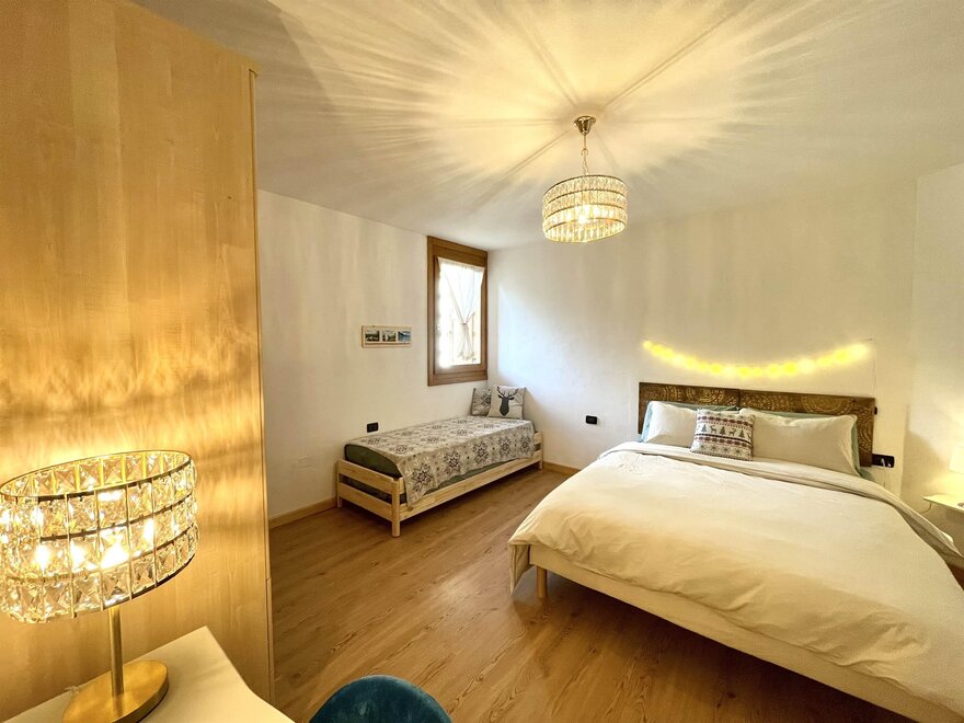 Романтическая квартира имеет большие окна, которые заполняют пространство светом, и балкон с прекрасным видом на исторический центр маленькой деревни и окружающие горы и леса.