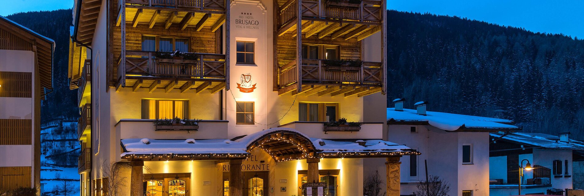 The recently renovated Hotel Brusago is a cozy, family-run establishment offering all the comforts for an unforgettable stay on the Pinè Plateau in both summer and winter. The hotel has a restaurant room, bar, terrace, elevator, reading room, game room and a tavern for parties and entertainment as well as private parking. All rooms have private bathrooms, telephone and balcony. The cuisine has the genuine flavor of home cooking. We are located in a very sunny area of the Dolomites, among green forests and meadows boasts ample opportunities for walks among the alpine lakes. Hotel Brusago is only 30 minutes from Trento and 1 1/2 hours from Verona airport.