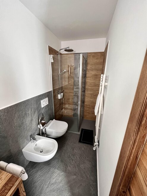 У нас есть два номера с одной кроватью, недавно отремонтированные в простом, но уютном, теплым альпийском стиле. В номерах есть собственные удобства с душем, туалетом, биде и феном.