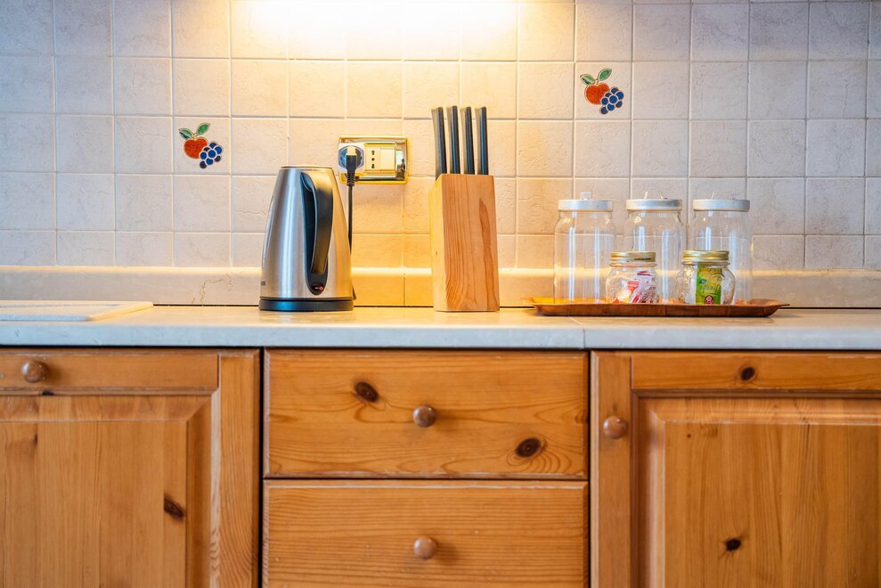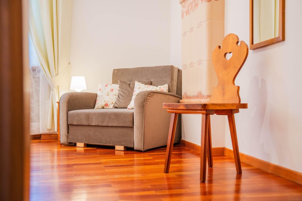 Апартамент расположен на первом этаже и состоит из входа, отдельной кухни, гостиной с масляным обогревателем, 1 ванной комнатой с ванной и душем, 1 спальни с двуспальной кроватью, 1 спальни с двухъярусной кроватью; балкон и терраса. Склад для оборудования. Животные не допускаются. Широкий сад в собственности в распоряжении гостей.