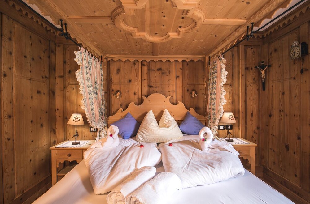 Уютный номер с панорамным видом на горный массив Ортлес-Чеведале или на сад, кровать из лиственницы, просторная ванная комната с душем, туалетом, бидетом, телевизор с плоским экраном и более 300 доступными телеканалами, фен, сейф, паркет из древней лиственницы 18-22 кв. м / идеальная заполняемость: 2 человека / + 1 ребенок > 10 лет