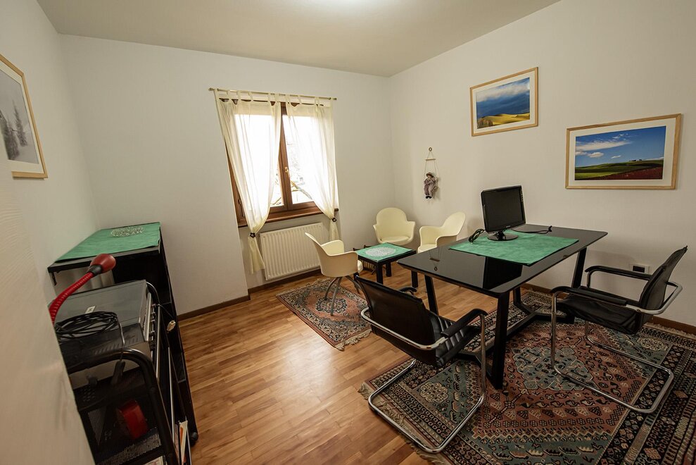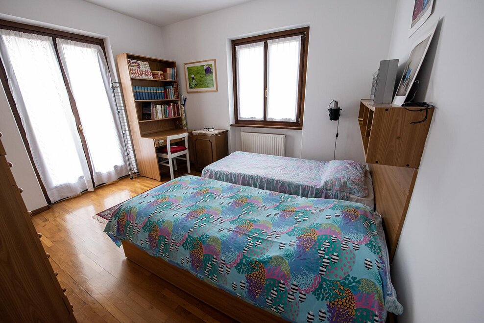 Из окон виднеются горы, окружающие долину. Квартира состоит из четырех помещений (гостиная, кабинет, 2 спальни), кухни и ванной комнаты. Вторая спальня оборудована двумя отдельными кроватями. Место тихое, есть сад, где можно пообедать. Домашние животные не разрешены.