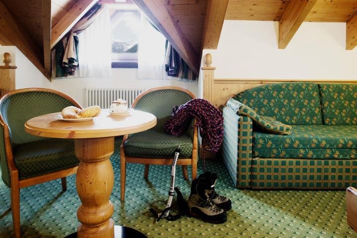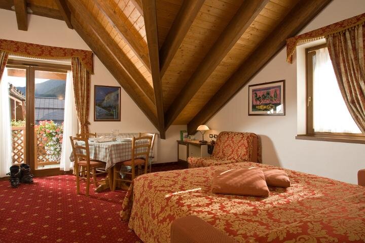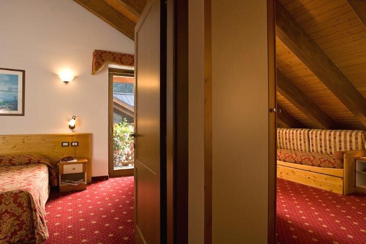 Джуниор Сьют особенно комфортабелен, просторен и светел. Обставлен в альпийском стиле, с заботой о каждой детали. Умелое использование красного ели делает его теплым и уютным. В комплект входят: телефон, спутниковое телевидение, мини-бар, сейф, подключение к интернету Wi-Fi, балкон или терраса, ванная комната с душем и феном. ВКЛЮЧЕНО В СТОИМОСТЬ ВХОД В СПА-ЦЕНТР: бассейн с водными аттракционами, гидромассажи и обширная зона для отдыха; сауна, паровая баня, витариум, душ-аттракцион.