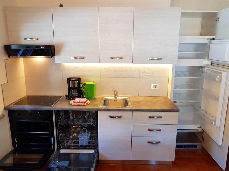чайник, холодильник, перины, духовка, обогреватель, постельные принадлежности, кухонная посуда, посудомоечная машина, living-room with kitchenette, apartment without fitted carpet, crockery and cutlery , тихая комната / апартамент, посуда в наличии, использование стиральной машины, балкон, микроволновая печь, спутниковое ТВ, максимальное число домашних животных: 1, барбекью в саду, фен, кофеварка, Wi Fi, детский столовый стул