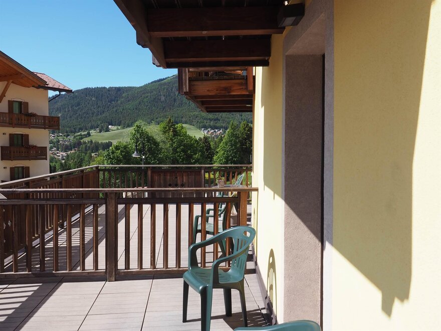 Номер суперфициальный с удобной кроватью, оформленный с основной мебелью из белого дерева с особым вниманием к чистоте. Уютный и комфортный, благодаря деревянному полу, è это идеальное решение для пар, ищущих расслабляющий отдых в сердце лесов Альпе Чимбра, всего в нескольких шагах от лыжных трасс. Оснащен балконом, где можно любоваться первыми лучами солнца утром или расслабиться с великолепными закатами над долиной. В номере есть собственная ванная комната с душем и феном.