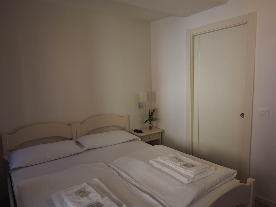 Номер с двуспальной кроватью и одной односпальной кроватью, обставленный простой белой мебелью с особым вниманием к чистоте. Уютный и комфортный, благодаря древесному полу, он является идеальным решением для семей, ищущих расслабляющий отдых в сердце лесов Альпе Чимбра, всего в нескольких шагах от лыжных склонов. Оснащен дверью с выходом на задний двор, откуда можно любовать первыми утренними лучами солнца. В номере есть собственная ванная комната с душем и феном.