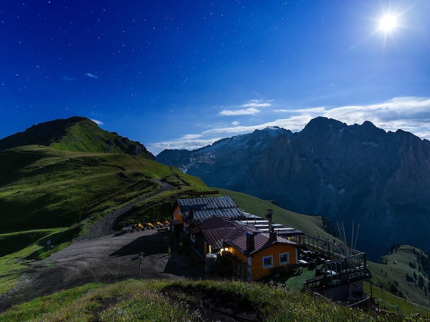 С одной стороны группа Селла, с другой - Мармолада и Гран Вернель: Рифужио Фредарола находится в стратегически важном месте как зимой (оно расположено прямо на маршруте Селла Ронда), так и летом (здесь начинается знаменитая тропа Виль дель Пан). Какой бы ни была пора года, если вы решите сделать перерыв в этом рифужио на Коль де Куч (под Сасс Бече), сядьте за столик напротив большой витрины, выходящей на юг (откуда также виден ледник Мармолада), и вы увидите, почему это место называется Белведере. Открытие С 20 июня по 20 сентября С декабря по апрель Перед походом рекомендуется проверить фактическую открытость рифужио, связавшись с управляющим. Маршруты За 1 час 30 минут по легкой тропе Виль дель Пан (которая раньше использовалась купцами из Беллуно для достижения долины Фасса) можно добраться до одноименного рифужио. Отсюда можно продолжить путь к перевалу Федайя (1.30 часа), а также пройти - оставаясь на высоте - по Виа Феррата дель Тринче до перевала Падон, вдоль фронта Великой войны (3 часа, сложность EEA).