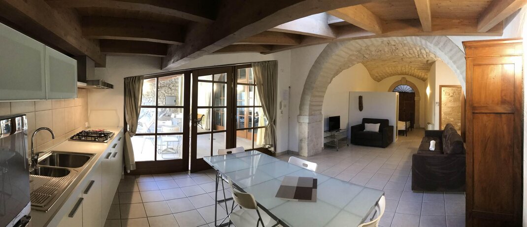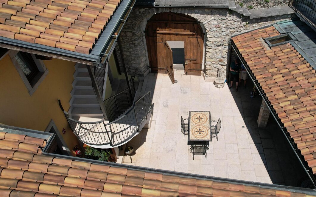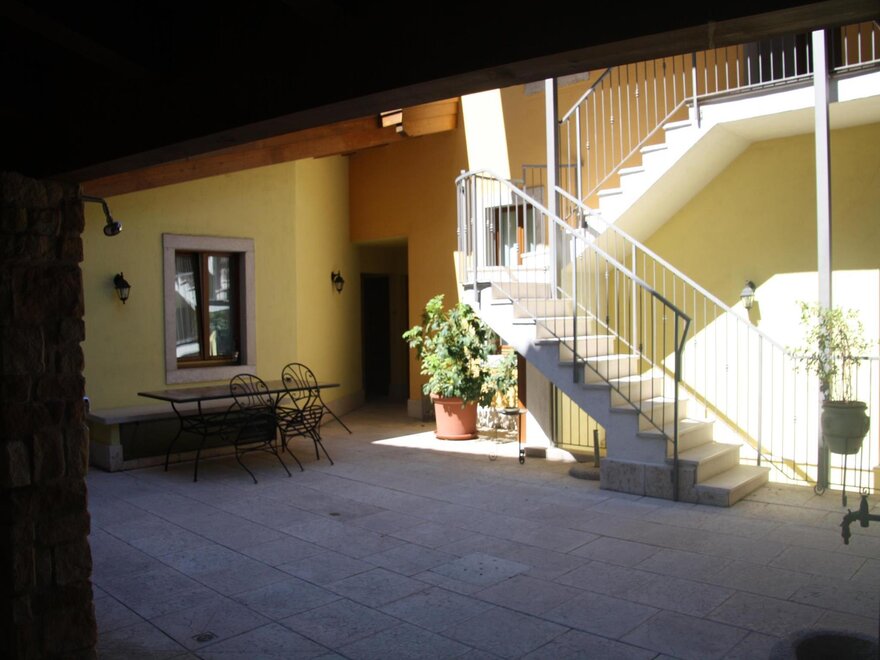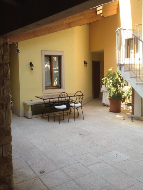 Апартаменты с одной спальней, которые выходят на внутренний двор, в который можно попасть, войдя через старинные боковые ворота здания. Во дворе есть два стола, которые можно использовать совместно с другими четырьмя апартаментами. В летний период доступны две пронумерованные шезлонги, которые являются частными и расположены у бассейна.