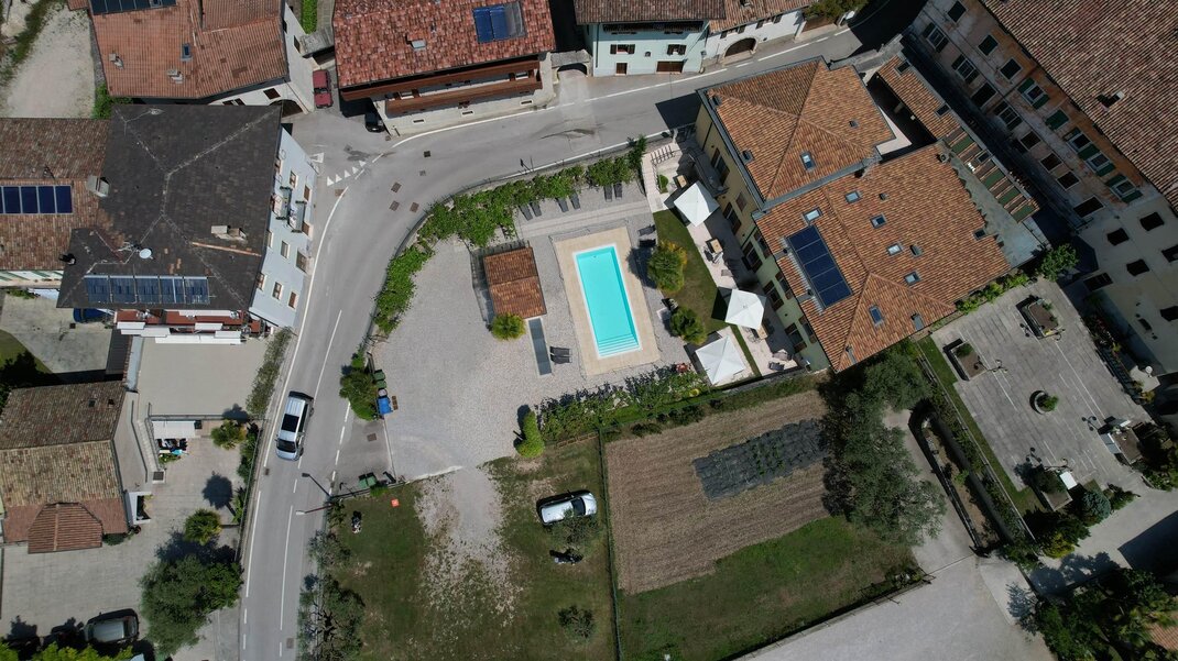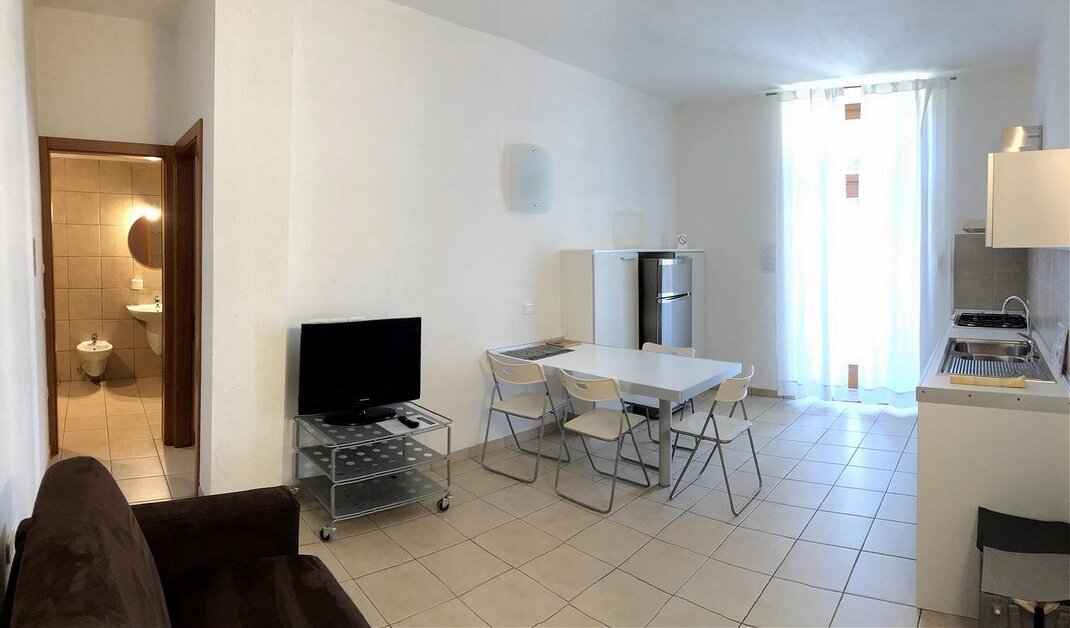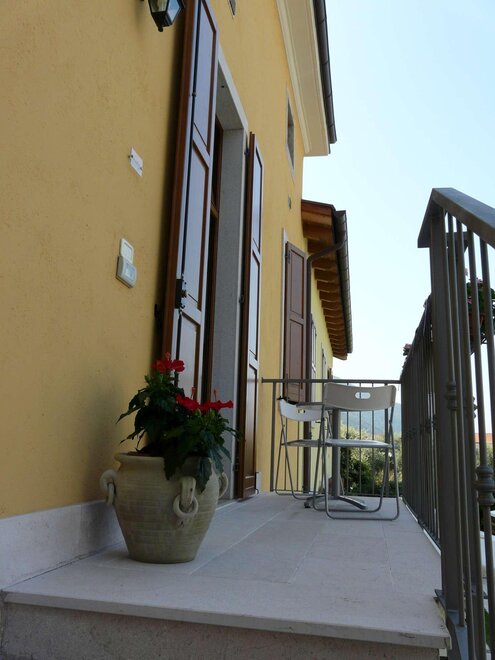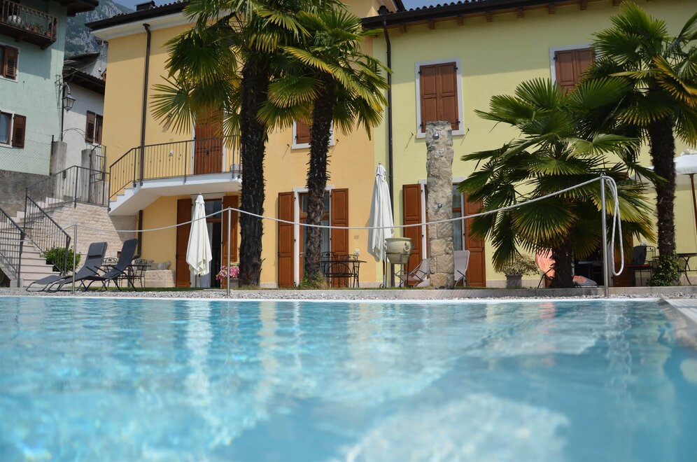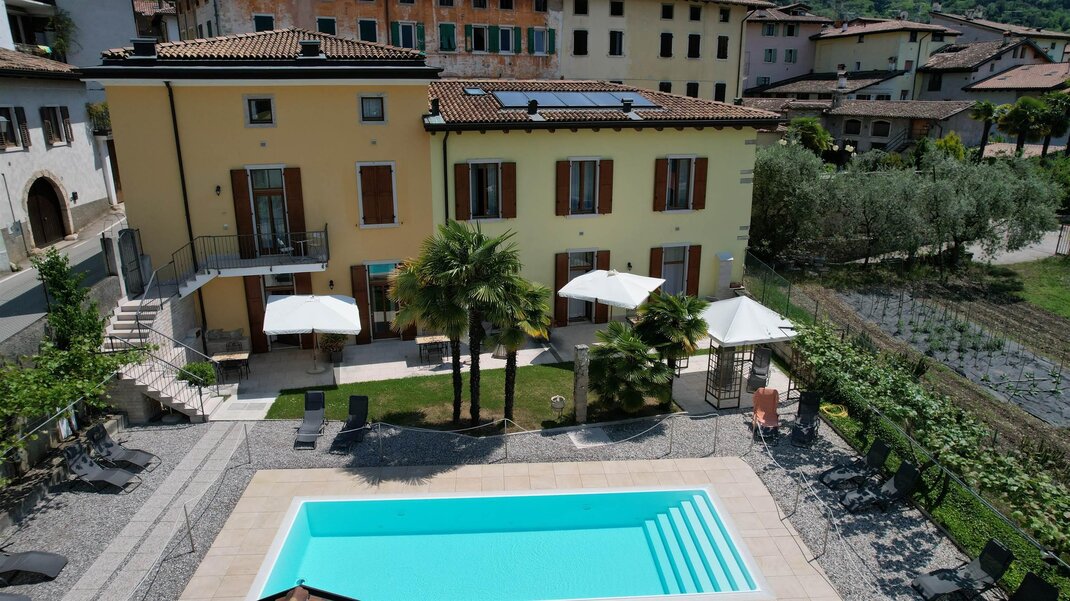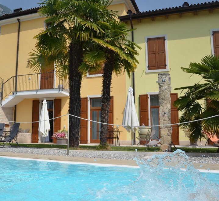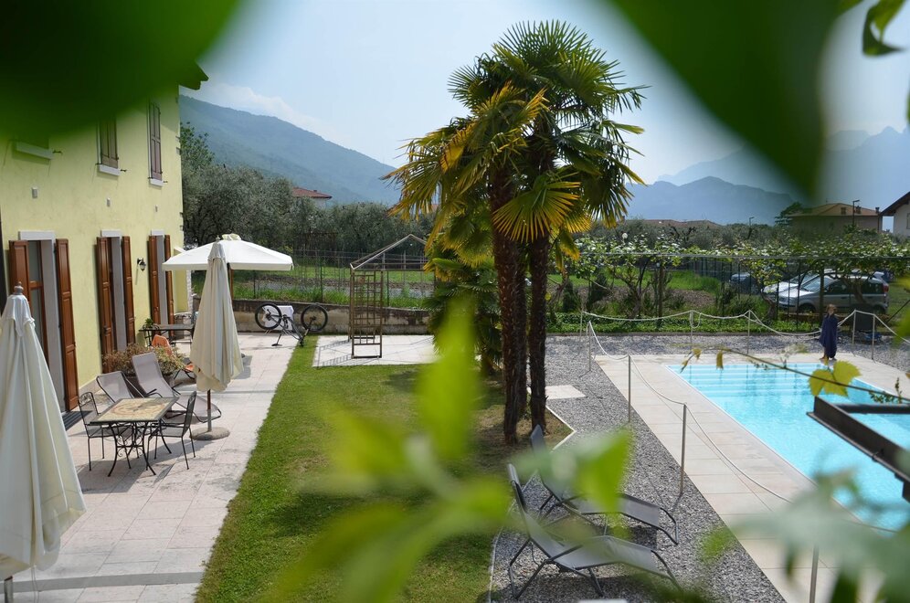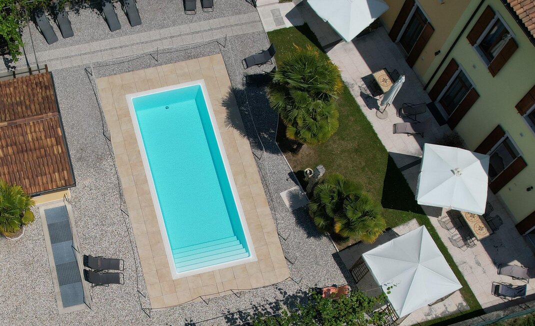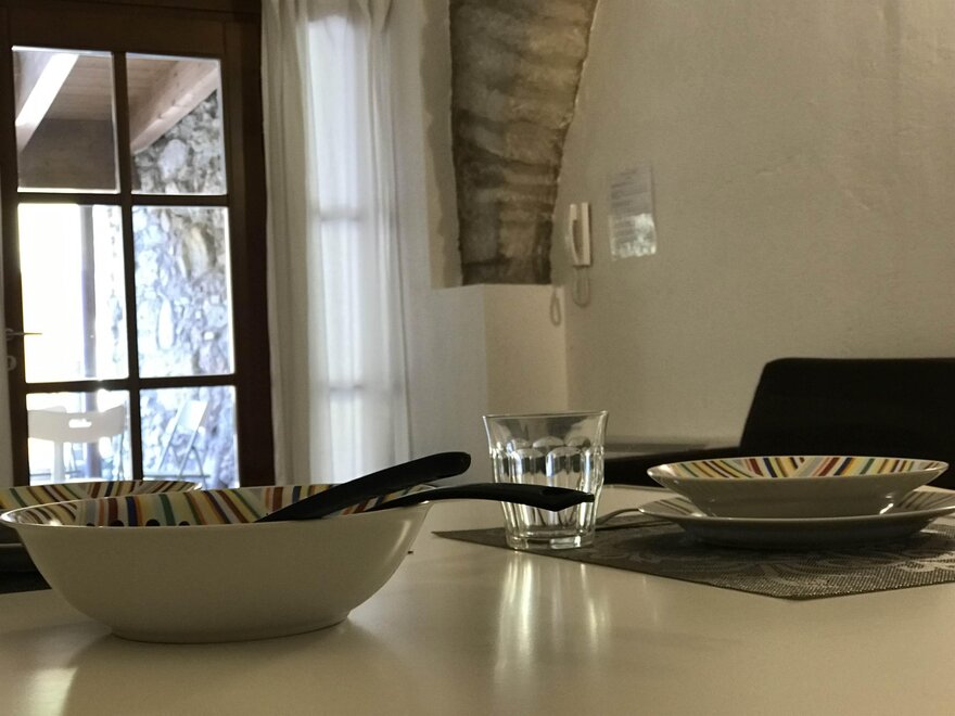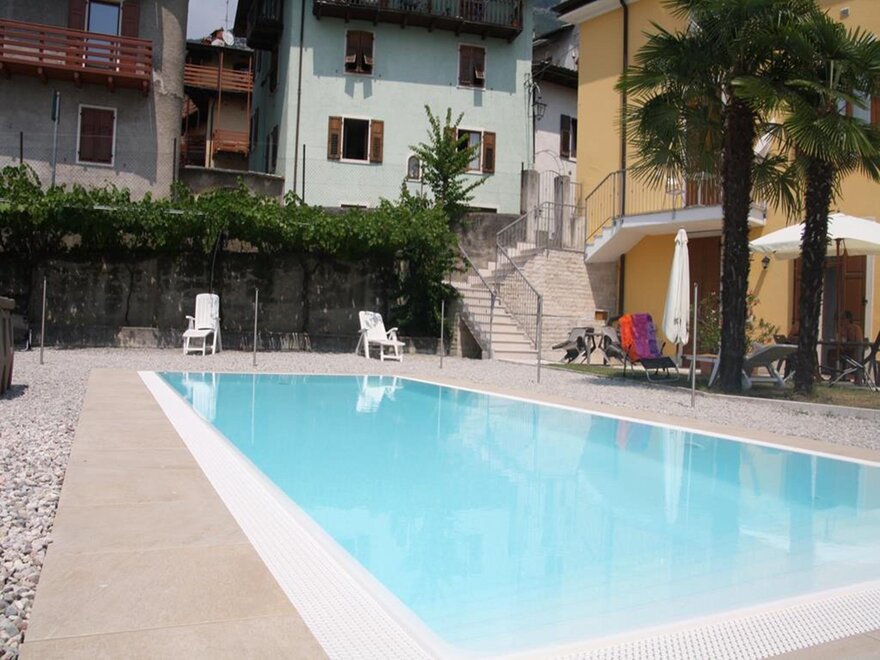 Апартамент 5 Джовe (43 кв.м) è б илocale с видом на бассейн, который выходит на маленькую внутреннюю площадь. На площадь можно попасть, войдя через старинные боковые ворота здания. В зоне отдыха с кухней находятся два дивана с раскладными кроватями. На площади есть два стола, которые можно использовать совместно с еще четырьмя апартаментами. В летний период доступны два пронумерованных шезлонга, которые, соответственно, являются частными и расположены у бассейна.