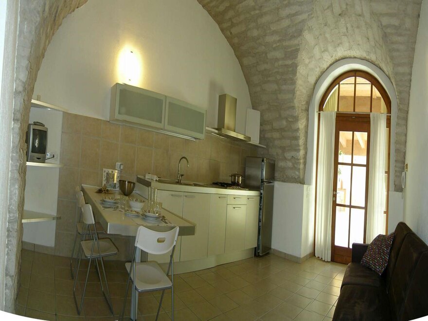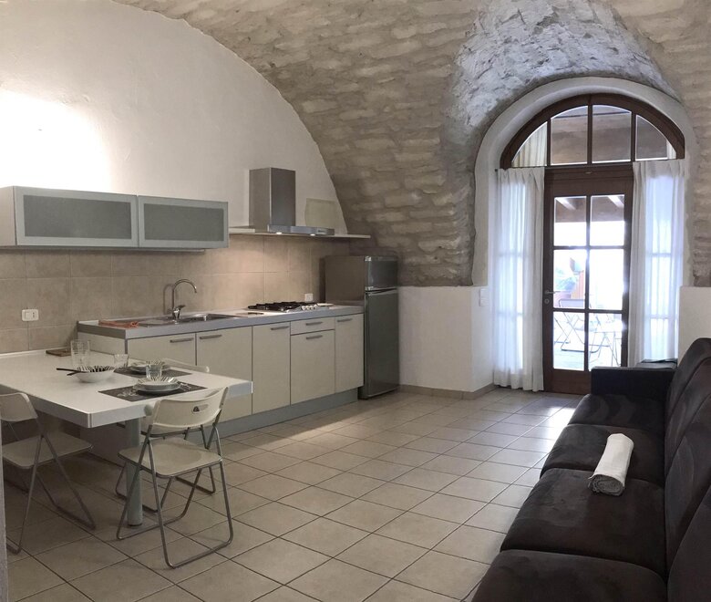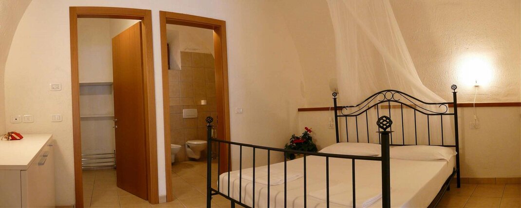 Просторные и широкие однокомнатные апартаменты, которые выходят прямо на крытую веранду, где можно пообедать на свежем воздухе даже в плохую погоду. Они характеризуются каменными арочными потолками, а железные кровати создают романтическую атмосферу. Подходят также для более многочисленных групп благодаря удобным раскладным диванам в просторной гостиной, ожидающим приема большего количества гостей.