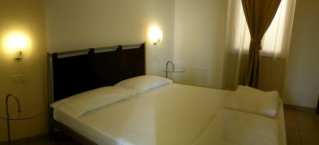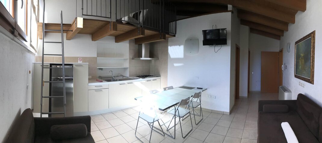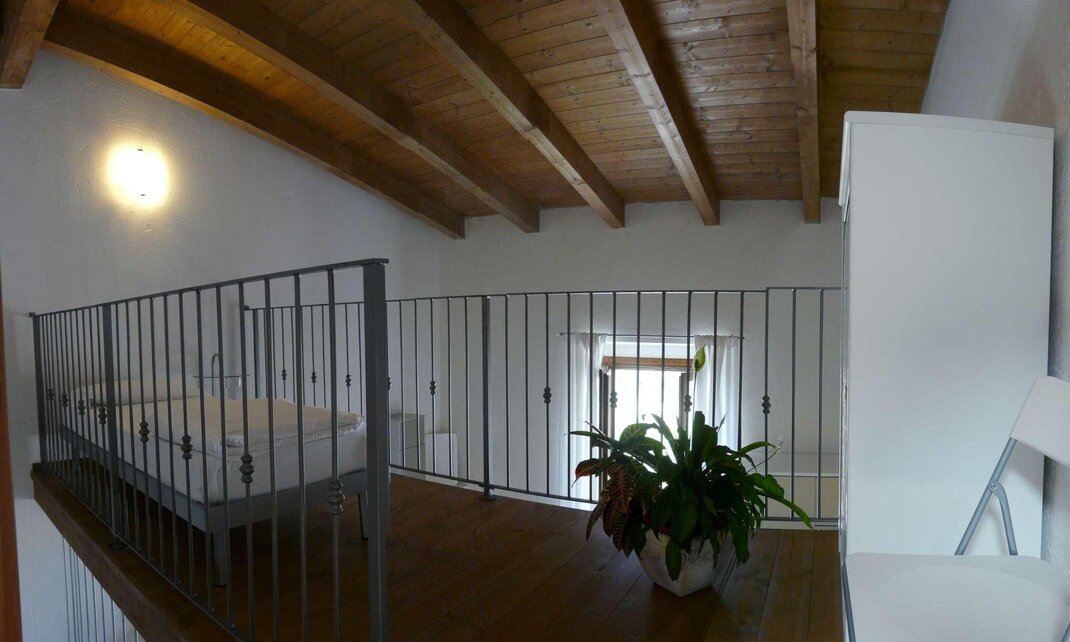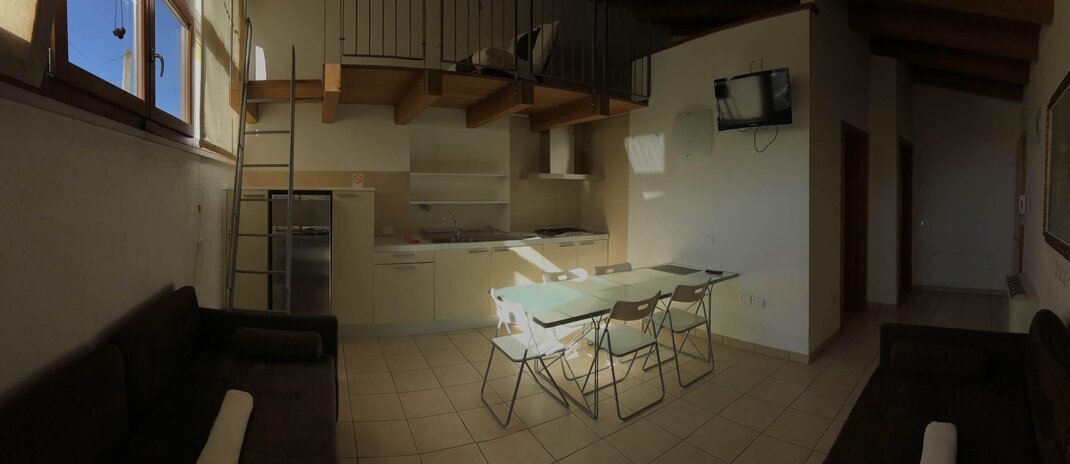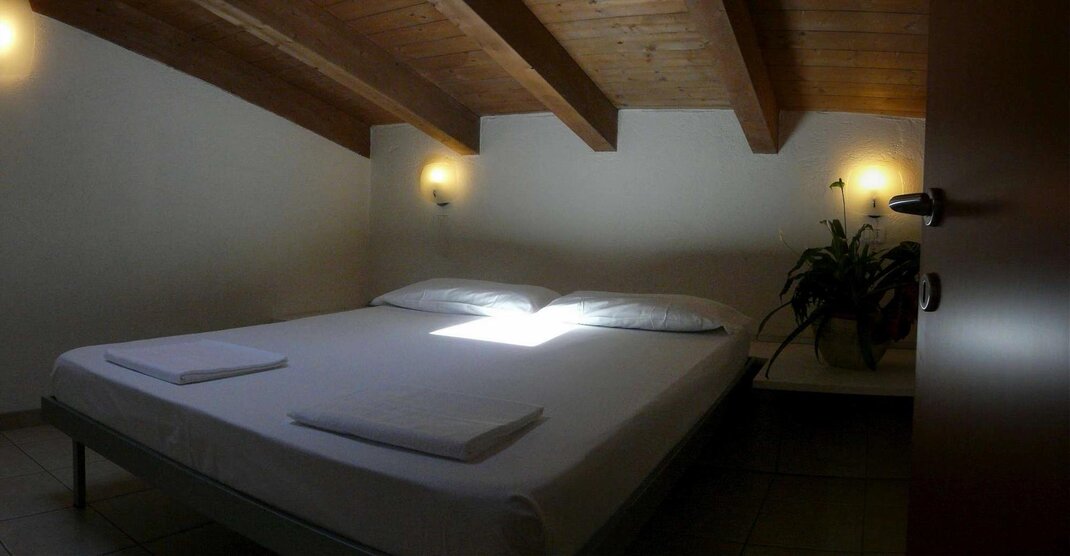 Апп. 6 Сатурн è - это апартамент с видом на бассейн, расположенный на двух этажах, зона отдыха внизу и спальная зона сверху. Вход в апартамент осуществляется с внутренней площади. В зоне отдыха, с кухней, есть двуспальный диван-кровать и ванная комната. На открытом мезонине, с видом на зону отдыха, есть две односпальные кровати (одна из которых выдвижная) и отдельная двуспальная комната.
