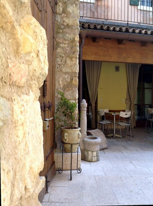 Апартаменты с одной спальней, выходящие на внутренний дворик, к которому можно попасть через старинные ворота сбоку здания. На внутреннем дворике имеются два стола, которые можно использовать совместно с другими четырьмя апартаментами. На летний период доступны две numbered шезлонга, следовательно, приватные, расположенные у бассейна.
