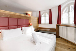 Семейный номер (26 кв.м) с двуспальной кроватью и односпальной, оформленный из натуральных материалов и с теплым деревянным рабочим столом. Оснащен высокоскоростным Интернетом с широкополосным доступом или беспроводной связью, консьержем круглосуточно, индивидуальным и автономным контролем температуры, гипоаллергенными подушками, услугой горничной дважды в день, полотенцами из 100% хлопка, феном, многоканальным телефоном с громкой связью, спутниковым телевидением, мини-баром, сейфом, косметическими средствами "La Bottega dell'albergo".