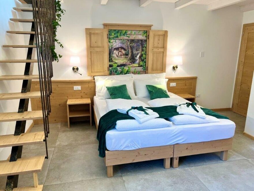 В ней есть двуспальная кровать, собственная ванная комната и терраса, с которой вы сможете наслаждаться видами садов района и панорамой на Доломиты Брента.Особенности номера / апартаментов