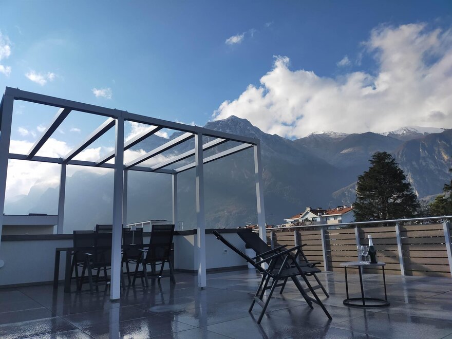 Расслабьтесь на эксклюзивной панорамной террасе площадью 80 м², любуясь замком Арко с одной стороны и смотровой площадкой Санта-Барбара с другой.