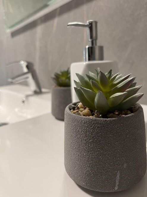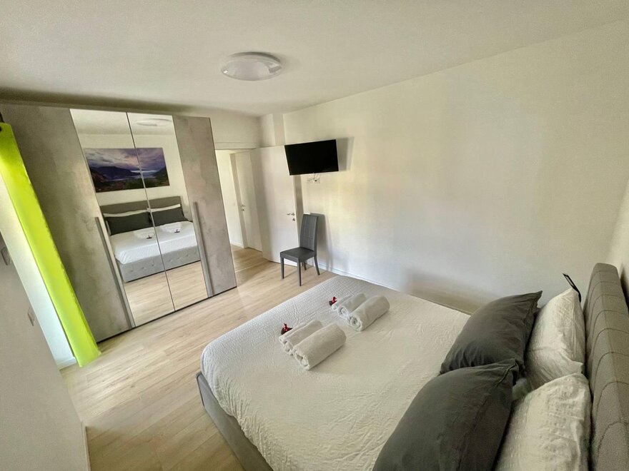 Квартира, завершенная в конце 2022 года, оформлена в теплом и уютном стиле, со всеми необходимыми удобствами; состоит из двух спален, ванной комнаты с душевой кабиной, гостиной, кухни с плитой/посудомоечной машиной/микроволновой печью, стиральной машины, просторных террас для каждой комнаты, частного открытого парковочного места и гаража, который также можно использовать как склад для велосипедов или спортивного оборудования.