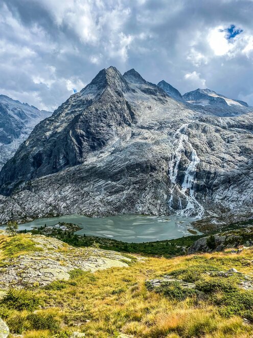 опция B от перевала Тонале на высоте 1882 м воспользуйтесь подъемником до перевала Парадизо 2573 м. Также воспользуйтесь вторым подъемником до перевала Презена, затем следуйте по тропе №209, которая спускается к озеру Скуры, а затем к приюту, с перепадом высоты 549 м - - Прогулка занимает около 1,5 часов